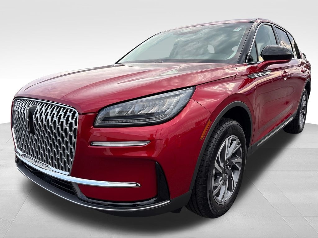 2023 Lincoln Corsair Standard Certified. Red Carpet Metallic Tinted Clearcoat Standard FWD 8-Speed Automatic 2.0L Turbocharged Lincoln Certified, 10 Speakers, 18" Bright Machined Aluminum Wheels, 3.81 Axle Ratio, 4-Wheel Disc Brakes, ABS brakes, Air Conditioning, Alloy wheels, AM/FM radio: SiriusXM, Auto High-beam Headlights, Auto-dimming Rear-View mirror, Automatic temperature control, Brake assist, Bumpers: body-color, Compass, Delay-off headlights, Driver door bin, Driver vanity mirror, Dual front impact airbags, Dual front side impact airbags, Electronic Stability Control, Emergency communication system: SYNC 4 911 Assist, Equipment Group 100A, Four wheel independent suspension, Front anti-roll bar, Front Bucket Seats, Front Center Armrest, Front dual zone A/C, Front reading lights, Fully automatic headlights, Heated door mirrors, Heated front seats, Illuminated entry, Knee airbag, Leather steering wheel, Lincoln Premium Audio System Subwoofer Delete, Lincoln Soft Touch Heated Comfort Seats, Low tire pressure warning, Memory seat, Navigation system: Connected Navigation (3-year trial), Occupant sensing airbag, Outside temperature display, Overhead airbag, Overhead console, Panic alarm, Passenger door bin, Passenger vanity mirror, Power door mirrors, Power driver seat, Power Liftgate, Power passenger seat, Power steering, Power windows, Radio data system, Radio: Lincoln Premium Audio System w/MP3, Rear anti-roll bar, Rear Parking Sensors, Rear reading lights, Rear seat center armrest, Rear window defroster, Rear window wiper, Remote keyless entry, Security system, SiriusXM Radio, Speed control, Speed-sensing steering, Speed-Sensitive Wipers, Split folding rear seat, Spoiler, Steering wheel mounted A/C controls, Steering wheel mounted audio controls, SYNC 4 Communications & Entertainment System, Tachometer, Telescoping steering wheel, Tilt steering wheel, Traction control, Trip computer, Variably intermittent wipers, Wheels: 18" Warm Painted Alloy.