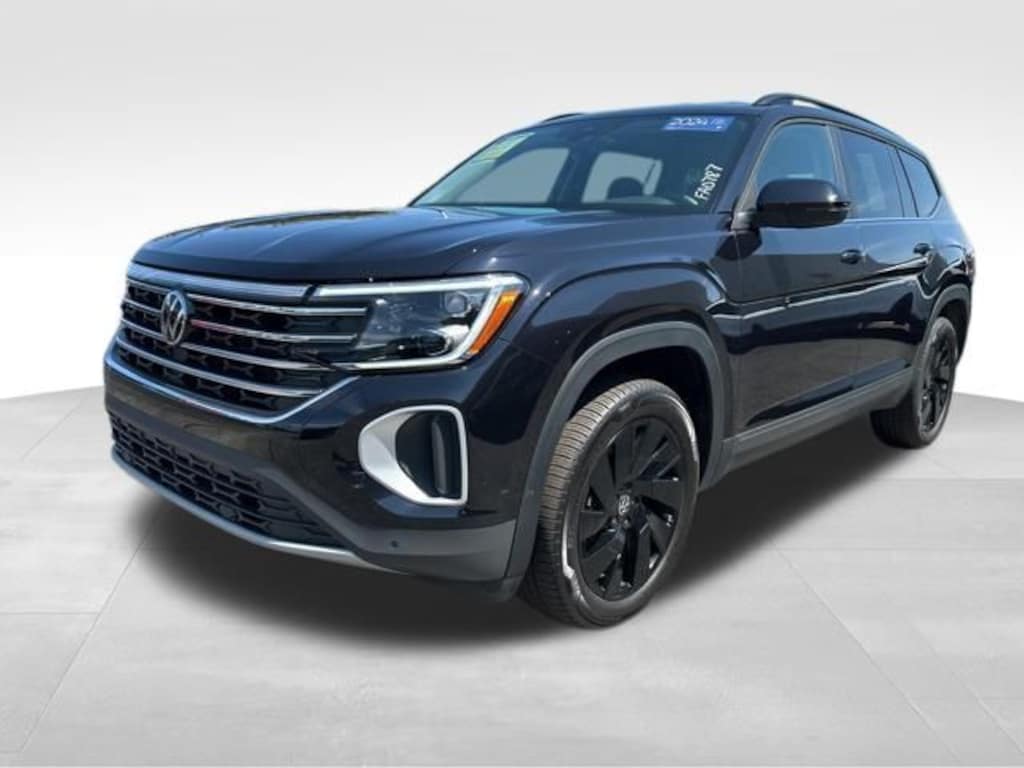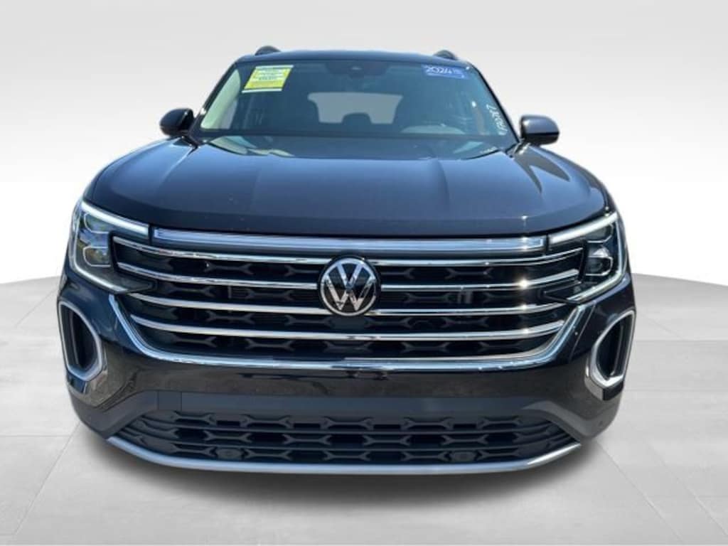 2024 Volkswagen Atlas 2.0T SE w/Technology Certified. Deep Black 2.0T SE w/Technology FWD 8-Speed Automatic with Tiptronic 2.0L TSI Volkswagen Certified, 3.60 Axle Ratio, 3rd row seats: split-bench, 4-Wheel Disc Brakes, 6 Speakers, ABS brakes, Air Conditioning, Alloy wheels, AM/FM radio: SiriusXM with 360L, Auto-dimming Rear-View mirror, Automatic temperature control, Black Wheel Package, Brake assist, Bumpers: body-color, Compass, Delay-off headlights, Driver door bin, Driver vanity mirror, Dual front impact airbags, Dual front side impact airbags, Electronic Stability Control, Emergency communication system: VW Car-Net Safe & Secure 5-year, Exterior Parking Camera Rear, Four wheel independent suspension, Front anti-roll bar, Front Bucket Seats, Front Center Armrest, Front dual zone A/C, Front fog lights, Front reading lights, Fully automatic headlights, Heated door mirrors, Heated front seats, Heated steering wheel, Heated/Actively Ventilated Front Bucket Seats, Illuminated entry, Low tire pressure warning, Occupant sensing airbag, Outside temperature display, Overhead airbag, Overhead console, Panic alarm, Passenger door bin, Passenger vanity mirror, Perforated V-Tex Leatherette Seating Surfaces, Power door mirrors, Power driver seat, Power Liftgate, Power steering, Power windows, Radio data system, Radio: MIB3 Composition Media, Rain sensing wipers, Rear air conditioning, Rear anti-roll bar, Rear reading lights, Rear seat center armrest, Rear window defroster, Rear window wiper, Remote keyless entry, Rubber Mats - Bench Seat, Security system, Speed control, Speed-sensing steering, Split folding rear seat, Spoiler, Standard Suspension, Steering wheel mounted audio controls, Tachometer, Telescoping steering wheel, Tilt steering wheel, Traction control, Trip computer, Turn signal indicator mirrors, Variably intermittent wipers, Ventilated front seats, Wheels: 20" 2-Tone Machined Alloy, Wheels: 20" Multi-Spoke Black Painted Alloy.