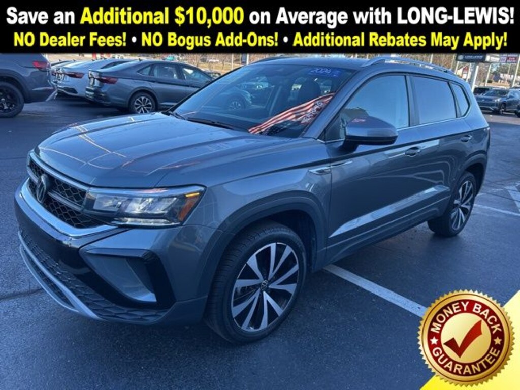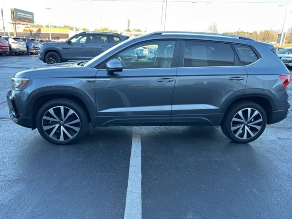 2024 Volkswagen Taos 1.5T SE Certified. Gray 1.5T SE FWD 8-Speed Automatic with Tiptronic 1.5L I4 Turbocharged DOHC 16V LEV3-SULEV30 158hp Volkswagen Certified, 3.23 Axle Ratio, 4-Wheel Disc Brakes, 6 Speakers, ABS brakes, Active Blind Spot Monitor, Air Conditioning, Alloy wheels, AM/FM radio: SiriusXM with 360L, Auto High-beam Headlights, Automatic temperature control, Brake assist, Bumpers: body-color, CloudTex & Cloth Seating Surfaces, Compass, Delay-off headlights, Driver door bin, Driver vanity mirror, Dual front impact airbags, Dual front side impact airbags, Electronic Stability Control, Emergency communication system: VW Car-Net Safe & Secure 5-year, Exterior Parking Camera Rear, Front anti-roll bar, Front Bucket Seats, Front Center Armrest, Front dual zone A/C, Front reading lights, Front Strut Rear Torsion Beam Suspension, Front wheel independent suspension, Fully automatic headlights, Heated door mirrors, Heated Front Bucket Seats, Heated front seats, Heated steering wheel, Illuminated entry, Leather Shift Knob, Low tire pressure warning, Occupant sensing airbag, Outside temperature display, Overhead airbag, Overhead console, Panic alarm, Passenger door bin, Passenger vanity mirror, Power door mirrors, Power driver seat, Power steering, Power windows, Radio data system, Radio: MIB3 Composition Media AM/FM/HD, Rain sensing wipers, Rear anti-roll bar, Rear seat center armrest, Rear window defroster, Rear window wiper, Remote keyless entry, Roof rack: rails only, Security system, Speed control, Speed-sensing steering, Split folding rear seat, Spoiler, Steering wheel mounted audio controls, Tachometer, Telescoping steering wheel, Tilt steering wheel, Traction control, Trip computer, Variably intermittent wipers, Wheels: 18" 2-Tone Machined Alloy.