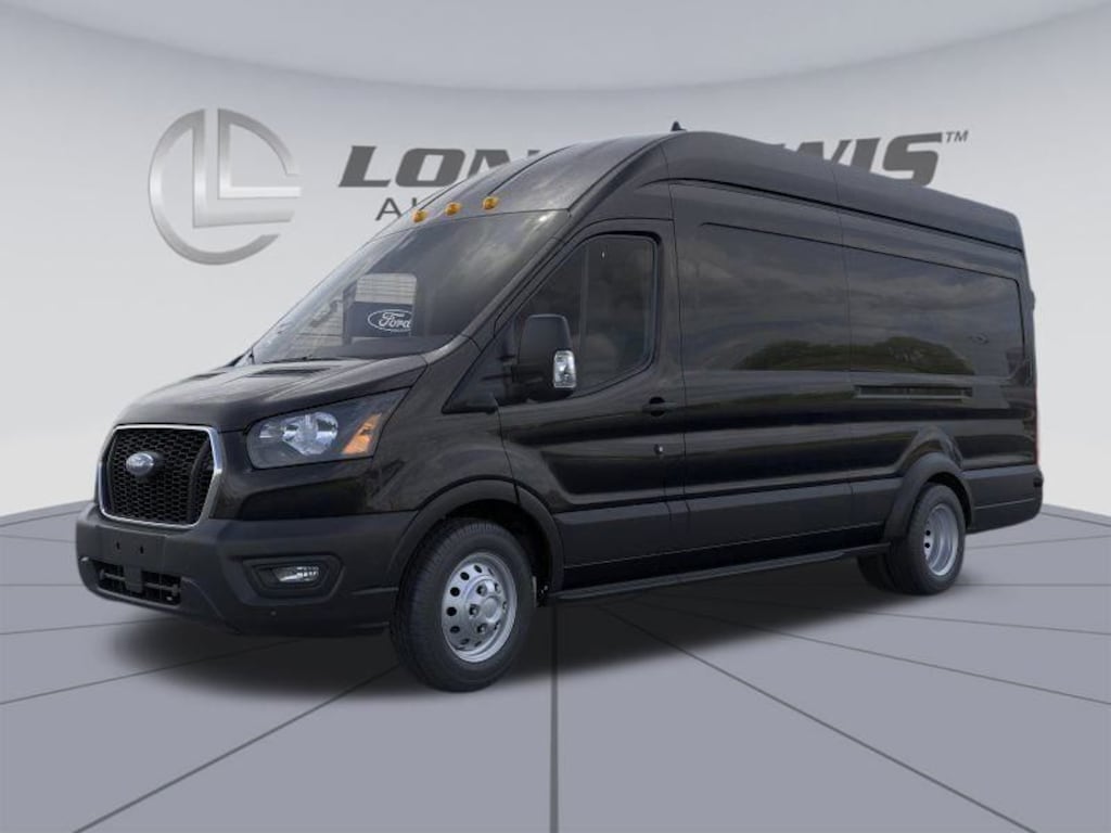 Agate Black Metallic 2025 Ford Transit-350 RWD 10-Speed Automatic with Overdrive EcoBoost 3.5L V6 GTDi DOHC 24V Twin Turbocharged 2 Additional Keys (4 Total), 3.73 Limited-Slip Axle Ratio, 360-Degree Camera w/Split View, 4 Speakers, 4-Wheel Disc Brakes, ABS brakes, Air Conditioning, AM/FM radio, AM/FM Stereo, Auto High-beam Headlights, Auxiliary Fuse Panel, BLIS Blind Spot Information System, Brake assist, Cloth Front Bucket Seats, Dark Palazzo Gray Vinyl Bucket Seats, Dark Palazzo Gray Vinyl Bucket Seats w/Armrests, Delay-off headlights, Driver Controlled Front/Rear Aux A/C & Heater, Driver door bin, Driver's Seat Mounted Armrest, Dual AGM Batteries (70 Amp-hr Each), Dual front impact airbags, Dual front side impact airbags, Dual rear wheels, Electronic Air Temperature Control, Electronic Stability Control, Exterior Parking Camera Rear, Front anti-roll bar, Front Bucket Seats, Front Fog Lamps, Front License Plate Bracket, Front reading lights, Front Sensing System, Front wheel independent suspension, Fully automatic headlights, Honeycomb Mesh Grille w/Chrome Surround, Illuminated entry, Lane Keeping System, Low tire pressure warning, Midship Extended Range Fuel Tank (31 Gallons), Modified Vehicle Wiring System, Occupant sensing airbag, Overhead airbag, Panic alarm, Passenger cancellable airbag, Passenger door bin, Power door mirrors, Power steering, Power windows, Radio: AM/FM Stereo w/SYNC 4, Remote keyless entry, Reverse Sensing System, Short-Arm Manual-Folding Power Adjust Mirrors, Short-Arm Pwr-Folding Heated Pwr Adjusting Mirrors, Side Sensing System, Speed control, Steering wheel mounted audio controls, Tachometer, Telescoping steering wheel, Tilt steering wheel, Traction control, Variably intermittent wipers, Vinyl Front Bucket Seats, Wheels: 16" Heavy Duty Silver Steel.