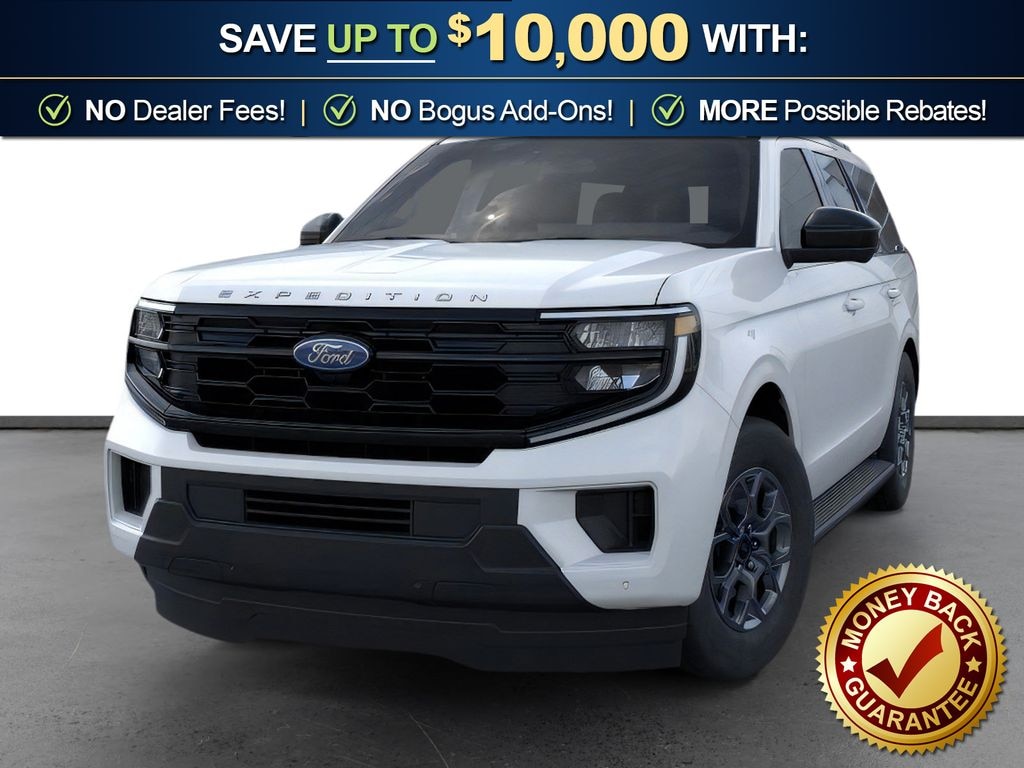 Oxford White 2026 Ford Expedition Active FLT RWD 10-Speed Automatic EcoBoost 3.5L V6 GTDi DOHC 24V Twin Turbocharged 3.31 Axle Ratio, 3rd row seats: split-bench, 4-Wheel Disc Brakes, 6 Speakers, ABS brakes, Air Conditioning, Alloy wheels, AM/FM radio: SiriusXM with 360L, Apple CarPlay/Android Auto, Auto High-beam Headlights, Auto-dimming Rear-View mirror, Automatic temperature control, Brake assist, Bumpers: body-color, Cloth Front Captain's Chairs, Compass, Delay-off headlights, Driver door bin, Driver vanity mirror, Dual front impact airbags, Dual front side impact airbags, Electronic Stability Control, Emergency communication system: 911 Assist, Exterior Parking Camera Rear, Ford Connectivity Package (1-Year Included), Ford Digital Experience, Four wheel independent suspension, Front and 2nd Rows Floor Liners Without Carper Mats, Front anti-roll bar, Front Bucket Seats, Front Center Armrest, Front dual zone A/C, Front License Plate Bracket, Front reading lights, Fully automatic headlights, Heated door mirrors, Illuminated entry, Low tire pressure warning, Navigation System, Occupant sensing airbag, Outside temperature display, Overhead airbag, Overhead console, Panic alarm, Passenger door bin, Passenger vanity mirror, Power door mirrors, Power driver seat, Power passenger seat, Power steering, Power windows, Radio data system, Radio: AM/FM Stereo with MP3 Capable, Rear air conditioning, Rear anti-roll bar, Rear reading lights, Rear window defroster, Rear window wiper, Reclining 3rd row seat, Remote keyless entry, Security system, SiriusXM with 360L, Speed control, Speed-sensing steering, Speed-Sensitive Wipers, Split folding rear seat, Spoiler, Steering wheel mounted audio controls, Tachometer, Telescoping steering wheel, Tilt steering wheel, Traction control, Trip computer, Variably intermittent wipers, Voltmeter, Wheels: 18" x 8.5" Dark Alloy Painted Aluminum.
