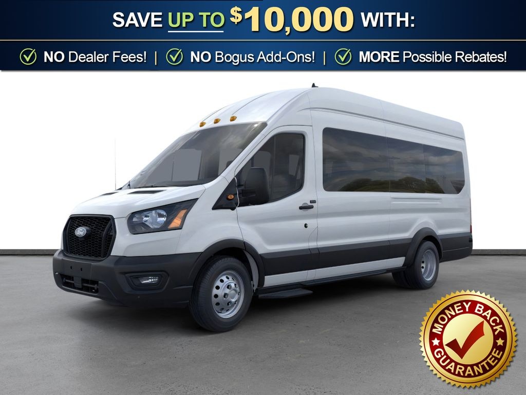 Oxford White 2026 Ford Transit-350 XL FLT RWD 10-Speed Automatic with Overdrive EcoBoost 3.5L V6 GTDi DOHC 24V Twin Turbocharged 2 Additional Keys (4 Total), 253-Degree Rear Door Opening, 3.73 Limited-Slip Axle Ratio, 3rd row seats: split-bench, 4-Wheel Disc Brakes, 4th-Row Bench Seat, 5th row bench seat, 8 Speakers, ABS brakes, Air Conditioning, Apple CarPlay/Android Auto, Auto High-beam Headlights, Back Up Alarm, Black High-Intensity Discharge (HID) Headlamps, Brake assist, Cloth Front Bucket Seats, Delay-off headlights, Driver door bin, Driver vanity mirror, Driver's Seat Mounted Armrest, Dual front impact airbags, Dual front side impact airbags, Dual rear wheels, Electronic Stability Control, Emergency communication system: 911 Assist, Extended Length Passenger Running Board, Ford Connectivity Package (1-Year Included), Frame Mounted Hitch Receiver, Front anti-roll bar, Front Bucket Seats, Front License Plate Bracket, Front Overhead Shelf, Front reading lights, Front wheel independent suspension, Heavy-Duty Trailer Tow Package, Illuminated entry, Keyless Entry Keypad, Large Center Console, Low tire pressure warning, Midship Extended Range Fuel Tank (31 Gallons), Navigation system: Connected Navigation, Occupant sensing airbag, Overhead airbag, Panic alarm, Passenger door bin, Passenger seat mounted armrest, Passenger vanity mirror, Power door mirrors, Power steering, Power windows, Rain sensing wipers, Rear air conditioning, Rear window defroster, Remote keyless entry, Speed control, Steering wheel mounted audio controls, SYNC 4, Tachometer, Telescoping steering wheel, Tilt steering wheel, Traction control, Trailer Brake Controller, Variably intermittent wipers, Wheels: 16" Heavy-Duty Silver Steel with Silver Hubcaps.