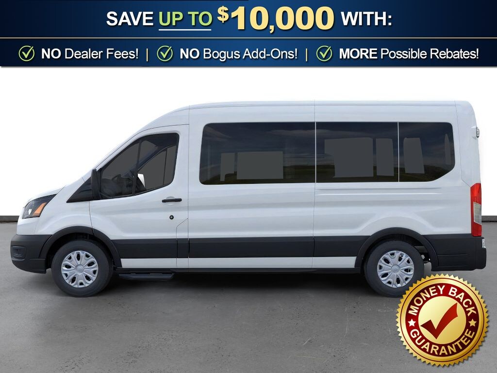 Oxford White 2026 Ford Transit-350 XL FLT RWD 10-Speed Automatic with Overdrive 3.5L V6 Flex Fuel 15-Passenger Seats, 2 Additional Keys (4 Total), 3.73 Axle Ratio, 3rd row seats: split-bench, 4-Wheel Disc Brakes, 4th-Row Bench Seat, 8 Speakers, ABS brakes, Air Conditioning, Apple CarPlay/Android Auto, Auto High-beam Headlights, Back Up Alarm, Black High-Intensity Discharge (HID) Headlamps, Brake assist, Cloth Front Bucket Seats, Delay-off headlights, Driver door bin, Driver vanity mirror, Driver's Seat Mounted Armrest, Dual front impact airbags, Dual front side impact airbags, Electronic Stability Control, Emergency communication system: 911 Assist, Extended Length Passenger Running Board, Ford Connectivity Package (1-Year Included), Frame Mounted Hitch Receiver, Front anti-roll bar, Front Bucket Seats, Front License Plate Bracket, Front Overhead Shelf, Front reading lights, Front wheel independent suspension, Heavy-Duty Trailer Tow Package, Illuminated entry, Large Center Console, Low tire pressure warning, Midship Extended Range Fuel Tank (31 Gallons), Navigation system: Connected Navigation, Occupant sensing airbag, Overhead airbag, Panic alarm, Passenger door bin, Passenger seat mounted armrest, Passenger vanity mirror, Power door mirrors, Power steering, Power windows, Rain sensing wipers, Rear air conditioning, Rear window defroster, Remote keyless entry, Speed control, Steering wheel mounted audio controls, SYNC 4, Tachometer, Telescoping steering wheel, Tilt steering wheel, Traction control, Trailer Brake Controller, Variably intermittent wipers, Wheels: 16" Steel with Full Silver Cover.