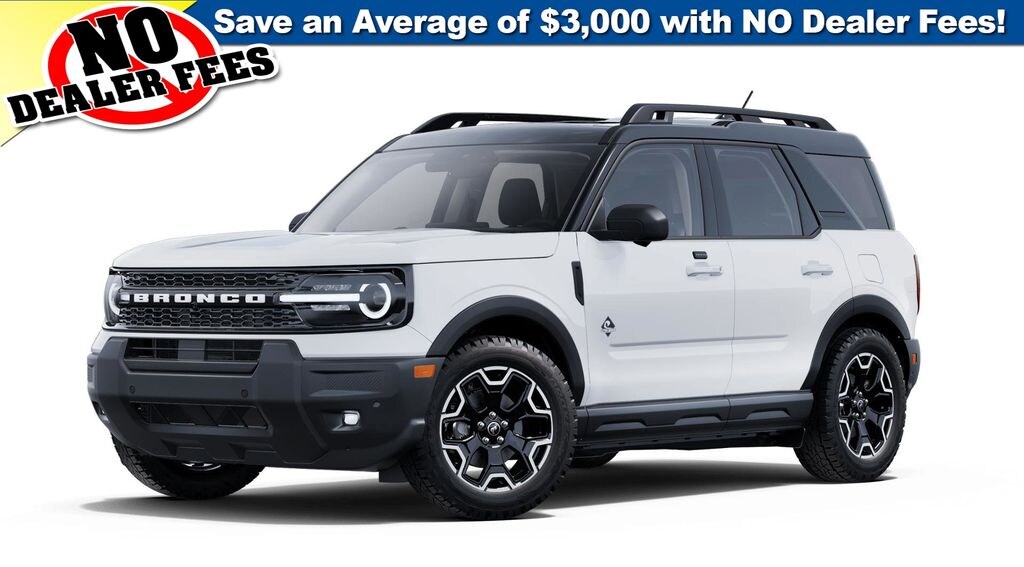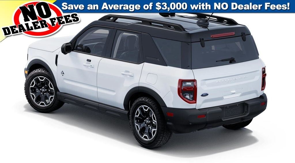 Oxford White 2025 Ford Bronco Sport Outer Banks 4WD 8-Speed Automatic 1.5L EcoBoost 360-Degree Camera w/Trail & Split View, 4-Wheel Disc Brakes, 6 Speakers, ABS brakes, Air Conditioning, Alloy wheels, AM/FM radio: SiriusXM, AM/FM Stereo, Auto High-beam Headlights, Auto-dimming Rear-View mirror, Automatic temperature control, B&O Sound System by Bang & Olufsen, Brake assist, Compass, Connected Navigation, Delay-off headlights, Driver door bin, Driver vanity mirror, Dual front impact airbags, Dual front side impact airbags, Electronic Stability Control, Emergency communication system: SYNC 4 911 Assist, Four wheel independent suspension, Front anti-roll bar, Front Bucket Seats, Front Center Armrest, Front Driver/Passenger Seat Back Map Pockets, Front dual zone A/C, Front fog lights, Front License Plate Bracket, Front Parking Sensors, Front reading lights, Fully automatic headlights, Garage door transmitter, HD Radio, Heated door mirrors, Heated front seats, Heated steering wheel, Illuminated entry, Knee airbag, Low tire pressure warning, Memory seat, Occupant sensing airbag, Outer Banks Tech Package+, Outside temperature display, Overhead airbag, Overhead console, Panic alarm, Passenger door bin, Passenger vanity mirror, Power door mirrors, Power driver seat, Power Moonroof, Power passenger seat, Power steering, Power windows, Premium Trimmed Front Bucket Seats w/Ebony/Roast, Radio data system, Rain sensing wipers, Rear anti-roll bar, Rear Parking Sensors, Rear reading lights, Rear seat center armrest, Rear window defroster, Rear window wiper, Remote keyless entry, Reverse Brake Assist, Security system, SiriusXM, Speed control, Speed-sensing steering, Speed-Sensitive Wipers, Split folding rear seat, Steering wheel mounted audio controls, SYNC 4 w/Enhanced Voice Recognition, Tachometer, Telescoping steering wheel, Tilt steering wheel, Traction control, Trip computer, Variably intermittent wipers, Wheels: 18" Ebony Black-Painted Aluminum.