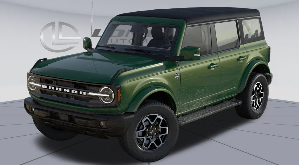 Eruption Green Metallic 2025 Ford Bronco Outer Banks 4WD 10-Speed Automatic 2.7L EcoBoost V6 18" Bright Machined Aluminum Wheels, 3.73 Axle Ratio, 4-Wheel Disc Brakes, 7 Speakers, ABS brakes, Air Conditioning, Alloy wheels, AM/FM radio: SiriusXM with 360L, AM/FM Stereo, Auto High-beam Headlights, Auto-dimming Rear-View mirror, Automatic temperature control, Brake assist, Carbonized Gray Molded-In-Color Hard Top, Compass, Connected Navigation, Delay-off headlights, Driver door bin, Driver vanity mirror, Dual front impact airbags, Dual front side impact airbags, Electronic Stability Control, Emergency communication system: 911 Assist, Exterior Parking Camera Rear, Front anti-roll bar, Front Bucket Seats, Front Center Armrest, Front dual zone A/C, Front fog lights, Front License Plate Bracket, Front reading lights, Front wheel independent suspension, Fully automatic headlights, Hard Top Sound Deadening Headliner, Heated door mirrors, Heated front seats, Heated Leather-Trimmed/Vinyl Bucket Seats, Heated steering wheel, Illuminated entry, Integrated roll-over protection, Leather Shift Knob, Low tire pressure warning, Navigation system: Connected Navigation, Occupant sensing airbag, Outside temperature display, Overhead airbag, Overhead console, Panic alarm, Passenger door bin, Passenger vanity mirror, Power door mirrors, Power driver seat, Power passenger seat, Power steering, Power windows, Radio data system, Rear seat center armrest, Rear-Window Defroster & Washer, Remote keyless entry, Security system, SiriusXM w/360L, Speed control, Split folding rear seat, Steering wheel mounted audio controls, SYNC 4, Tachometer, Telescoping steering wheel, Tilt steering wheel, Traction control, Trip computer, Variably intermittent wipers, Voltmeter.