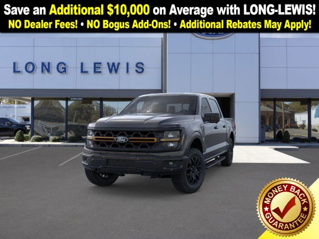 Agate Black Metallic 2025 Ford F-150 Tremor NFT 4WD 10-Speed Automatic 5.0L V8 4WD, 4 Pickup Box Tie-Down Plates, 4-Wheel Disc Brakes, 8 Speakers, ABS brakes, Adjustable pedals, Air Conditioning, Alloy wheels, AM/FM radio: SiriusXM with 360L, Auto High-beam Headlights, Auto-dimming door mirrors, Auto-dimming Rear-View mirror, Automatic temperature control, Bed Utility Package, Brake assist, Bumpers: body-color, Compass, Delay-off headlights, Driver door bin, Driver vanity mirror, Dual front impact airbags, Dual front side impact airbags, Electronic Locking w/3.73 Axle Ratio, Electronic Stability Control, Emergency communication system: SYNC 4 911 Assist, Front anti-roll bar, Front Bucket Seats, Front Center Armrest, Front dual zone A/C, Front fog lights, Front License Plate Bracket, Front reading lights, Front wheel independent suspension, Fully automatic headlights, GVWR: 7,100 lbs Payload Package, Heated door mirrors, Heated front seats, Illuminated entry, Integrated Trailer Brake Controller, LED Box Lighting, Low tire pressure warning, Navigation system: Connected Navigation, Occupant sensing airbag, Outside temperature display, Overhead airbag, Overhead console, Panic alarm, Passenger door bin, Passenger vanity mirror, Power door mirrors, Power driver seat, Power passenger seat, Power steering, Power Tailgate, Power windows, Radio data system, Radio: B&O Sound System by Bang & Olufsen, Rear reading lights, Rear step bumper, Rear window defroster, Remote keyless entry, Security system, Speed control, Split folding rear seat, Steering wheel mounted audio controls, SYNC 4 w/Enhanced Voice Recognition, Tachometer, Tailgate Step w/Tailgate Work Surface, Telescoping steering wheel, Tilt steering wheel, Tow/Haul Package, Traction control, Trip computer, Turn signal indicator mirrors, Unique Sport Cloth 40/Console/40 Power Front Seat, Variably intermittent wipers, Voltmeter, Wheels: 18" Alloy w/Dark Matte Finish, 4WD.