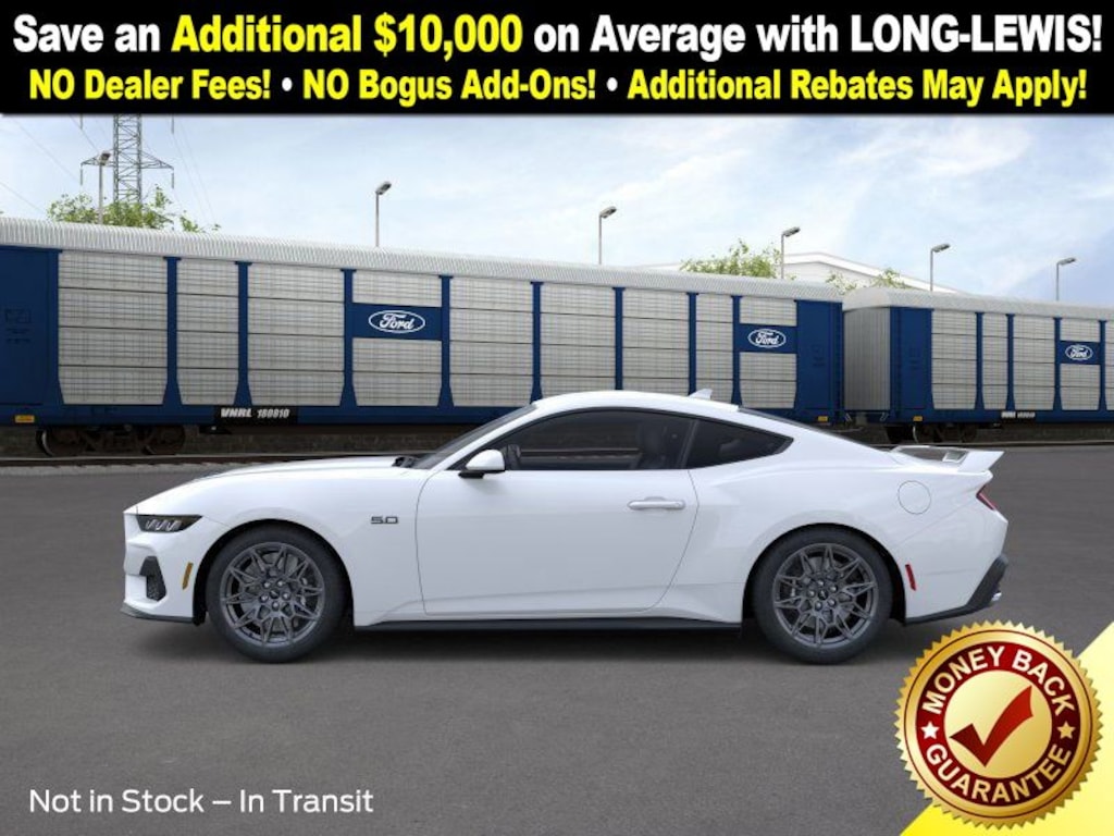 Oxford White 2025 Ford Mustang GT NFC RWD 10-Speed Automatic 5.0L V8 Ti-VCT 4-Wheel Disc Brakes, ABS brakes, Air Conditioning, Alloy wheels, AM/FM Stereo, Auto High-beam Headlights, Automatic temperature control, Brake assist, Bumpers: body-color, Cloth Bucket Seats, Compass, Delay-off headlights, Driver door bin, Driver vanity mirror, Dual front impact airbags, Dual front side impact airbags, Electric Hand-Operated Parking Brake (Drift Brake), Electronic Stability Control, Emergency communication system: 911 Assist, Exterior Parking Camera Rear, Four wheel independent suspension, Front anti-roll bar, Front Bucket Seats, Front Center Armrest, Front dual zone A/C, Front reading lights, Front Towing Hooks, Fully automatic headlights, GT Performance Package, Illuminated entry, Knee airbag, Leather Shift Knob, Leather steering wheel, Low tire pressure warning, Occupant sensing airbag, Outside temperature display, Overhead airbag, Overhead console, Panic alarm, Passenger door bin, Passenger vanity mirror, Power door mirrors, Power steering, Power windows, Radio data system, Rain sensing wipers, Rear anti-roll bar, Rear Parking Sensors, Rear window defroster, Remote keyless entry, Speed control, Speed-sensing steering, Speed-Sensitive Wipers, Split folding rear seat, Spoiler, Sport steering wheel, Steering wheel mounted audio controls, SYNC 4, Tachometer, Telescoping steering wheel, Tilt steering wheel, Traction control, Trip computer, Variably intermittent wipers, Voltmeter.