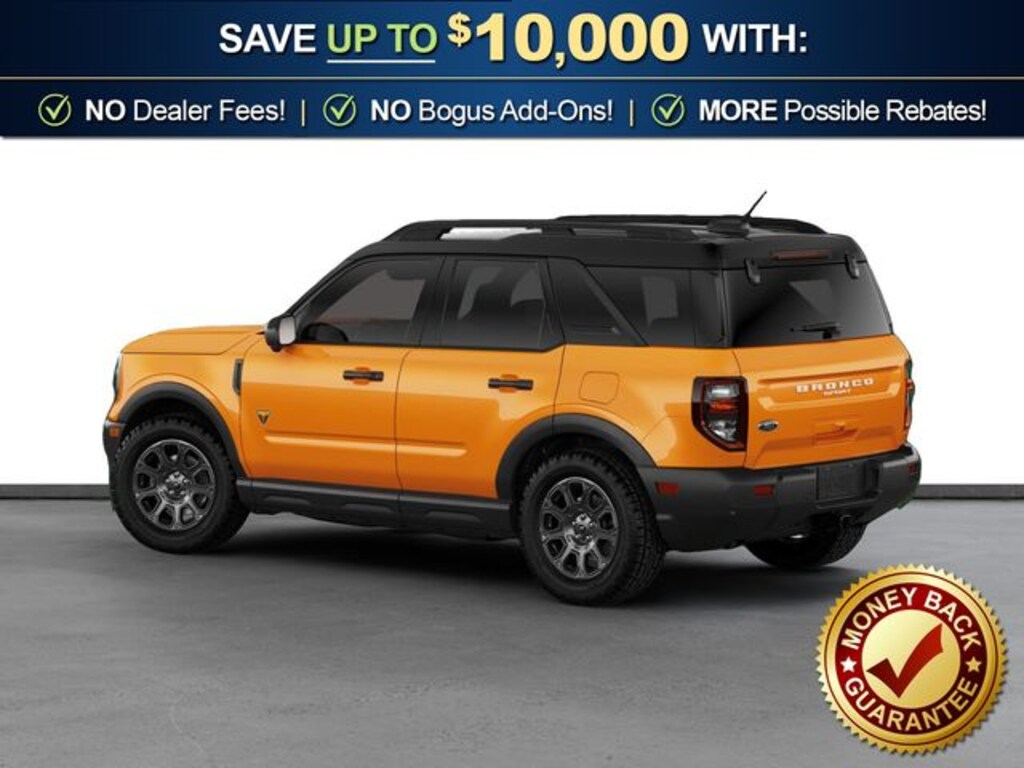 2026 Ford Bronco Sport Badlands NFT Orange Fury Metallic Tri-Coat Badlands NFT 4WD 8-Speed Automatic EcoBoost 2.0L I4 GTDi DOHC Turbocharged VCT 4-Wheel Disc Brakes, 6 Speakers, ABS brakes, Air Conditioning, Alloy wheels, AM/FM radio: SiriusXM with 360L, AM/FM Stereo, Apple CarPlay/Android Auto, Auto High-beam Headlights, Auto-dimming Rear-View mirror, Automatic temperature control, Badlands Tech Package, Brake assist, Compass, Connected Navigation (1-Year Included), Delay-off headlights, Driver door bin, Driver vanity mirror, Dual front impact airbags, Dual front side impact airbags, Electronic Stability Control, Emergency communication system: SYNC 4 911 Assist, Exterior Parking Camera Rear, Ford Connectivity Package (1-Year Included), Four wheel independent suspension, Front anti-roll bar, Front Bucket Seats, Front Center Armrest, Front fog lights, Front reading lights, Fully automatic headlights, Heated door mirrors, Heated front seats, Heated steering wheel, Illuminated entry, Internet access capable: 5G Modem - Ford Connectivity Package, Knee airbag, Leather-Trimmed Heated Front Sport Contour Bucket Seats, Low tire pressure warning, Memory seat, Noise Reduction Module, Occupant sensing airbag, Outside temperature display, Overhead airbag, Overhead console, Panic alarm, Passenger door bin, Passenger vanity mirror, Power door mirrors, Power driver seat, Power Moonroof, Power passenger seat, Power steering, Power windows, Radio data system, Radio: HD w/B&O Sound System by Bang & Olufsen, Rear anti-roll bar, Rear reading lights, Rear seat center armrest, Rear window defroster, Rear window wiper, Remote keyless entry, Security system, SiriusXM with 360L, Speed control, Speed-sensing steering, Speed-Sensitive Wipers, Split folding rear seat, Steering wheel mounted audio controls, SYNC 4 with Enhanced Voice Recognition, Tachometer, Telescoping steering wheel, Tilt steering wheel, Traction control, Trip computer, Variably intermittent wipers, Wheels: 17" Matte Black-Painted Aluminum.