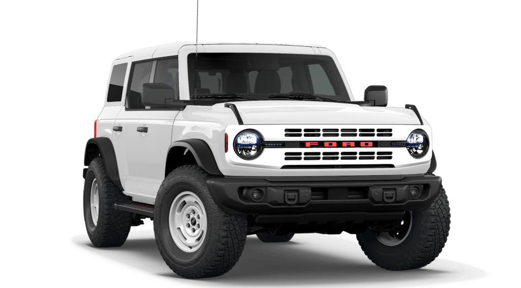 Oxford White 2026 Ford Bronco Heritage Edition NFT 4WD 10-Speed Automatic 2.7L EcoBoost V6 4-Wheel Disc Brakes, 7 Speakers, ABS brakes, Air Conditioning, Alloy wheels, AM/FM radio: SiriusXM with 360L, AM/FM Stereo, Auto High-beam Headlights, Auto-dimming Rear-View mirror, Automatic temperature control, Brake assist, Compass, Connected Navigation, Convertible HardTop, Convertible roof lining, Delay-off headlights, Driver door bin, Driver vanity mirror, Dual front impact airbags, Dual front side impact airbags, Electronic Stability Control, Emergency communication system: 911 Assist, Exterior Parking Camera Rear, Ford Connectivity Package (1-Year Included), Front anti-roll bar, Front Bucket Seats, Front Center Armrest, Front dual zone A/C, Front fog lights, Front License Plate Bracket, Front reading lights, Front wheel independent suspension, Fully automatic headlights, Glass rear window, Heated door mirrors, Heated front seats, Heated steering wheel, Illuminated entry, Integrated roll-over protection, Internet access capable: FordPass Connect, Low tire pressure warning, Navigation system: Connected Navigation, Occupant sensing airbag, Outside temperature display, Overhead airbag, Overhead console, Panic alarm, Passenger door bin, Passenger vanity mirror, Plaid Cloth Front Heated Bucket Seats, Power door mirrors, Power steering, Power windows, Radio data system, Rear window defroster, Rear window wiper, Remote keyless entry, Security system, SiriusXM with 360L, Speed control, Split folding rear seat, Steering wheel mounted audio controls, SYNC 4, Tachometer, Telescoping steering wheel, Tilt steering wheel, Traction control, Trip computer, Variably intermittent wipers, Wheels: 17" Unique White.