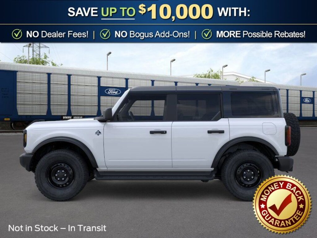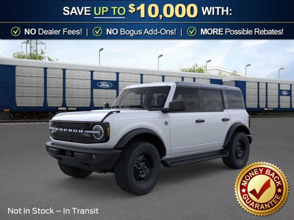 Oxford White 2026 Ford Bronco Outer Banks NFT 4WD 10-Speed Automatic 2.7L EcoBoost V6 18" Bright Machined Aluminum Wheels, 3.73 Axle Ratio, 4-Wheel Disc Brakes, 7 Speakers, ABS brakes, Air Conditioning, Alloy wheels, AM/FM radio: SiriusXM with 360L, AM/FM Stereo, Auto High-beam Headlights, Auto-dimming Rear-View mirror, Automatic temperature control, Black Appearance Package, Black Molded-in-Color Door Handles, Black Molded-in-Color Fender Flares, Black Molded-in-Color Sideview Mirror Caps, Black-Painted Molded-in-Color Grille, Brake assist, Compass, Connected Navigation, Delay-off headlights, Driver door bin, Driver vanity mirror, Dual front impact airbags, Dual front side impact airbags, Electronic Stability Control, Emergency communication system: 911 Assist, Exterior Parking Camera Rear, Ford Connectivity Package (1-Year Included), Front anti-roll bar, Front Bucket Seats, Front Center Armrest, Front dual zone A/C, Front fog lights, Front License Plate Bracket, Front reading lights, Front wheel independent suspension, Fully automatic headlights, Hard Top Sound Deadening Headliner, Heated door mirrors, Heated front seats, Heated Leather-Trimmed/Vinyl Bucket Seats, Heated steering wheel, Illuminated entry, Integrated roll-over protection, Leather Shift Knob, Low tire pressure warning, Navigation system: Connected Navigation, Occupant sensing airbag, Outside temperature display, Overhead airbag, Overhead console, Panic alarm, Passenger door bin, Passenger vanity mirror, Power door mirrors, Power driver seat, Power passenger seat, Power steering, Power windows, Radio data system, Rear seat center armrest, Rear-Window Defroster and Washer, Remote keyless entry, Security system, Shadow Black-Painted Hard Top, SiriusXM with 360L, Speed control, Split folding rear seat, Steering wheel mounted audio controls, SYNC 4, Tachometer, Telescoping steering wheel, Tilt steering wheel, Traction control, Trip computer, Variably intermittent wipers, Voltmeter.