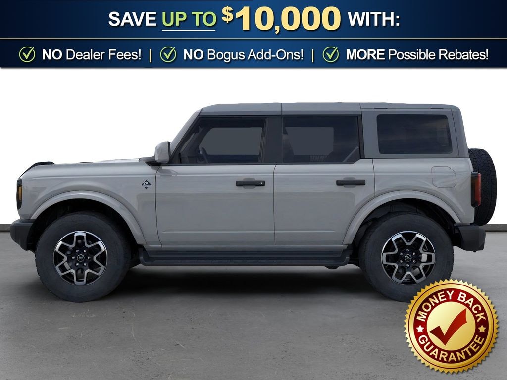 Avalanche Gray 2026 Ford Bronco Outer Banks NFT 4WD 10-Speed Automatic 2.3L EcoBoost I-4 18" Bright Machined Aluminum Wheels, 3.73 Axle Ratio, 4-Wheel Disc Brakes, 7 Speakers, ABS brakes, Air Conditioning, Alloy wheels, AM/FM radio: SiriusXM with 360L, AM/FM Stereo, Auto High-beam Headlights, Auto-dimming Rear-View mirror, Automatic temperature control, Brake assist, Carbonized Gray Molded-in-Color Hard Top, Compass, Connected Navigation, Delay-off headlights, Driver door bin, Driver vanity mirror, Dual front impact airbags, Dual front side impact airbags, Electronic Stability Control, Emergency communication system: 911 Assist, Exterior Parking Camera Rear, Ford Connectivity Package (1-Year Included), Front anti-roll bar, Front Bucket Seats, Front Center Armrest, Front dual zone A/C, Front fog lights, Front License Plate Bracket, Front reading lights, Front wheel independent suspension, Fully automatic headlights, Hard Top Sound Deadening Headliner, Heated door mirrors, Heated front seats, Heated Leather-Trimmed/Vinyl Bucket Seats, Heated steering wheel, Illuminated entry, Integrated roll-over protection, Leather Shift Knob, Low tire pressure warning, Navigation system: Connected Navigation, Occupant sensing airbag, Outside temperature display, Overhead airbag, Overhead console, Panic alarm, Passenger door bin, Passenger vanity mirror, Power door mirrors, Power driver seat, Power passenger seat, Power steering, Power windows, Radio data system, Rear seat center armrest, Rear-Window Defroster and Washer, Remote keyless entry, Security system, SiriusXM with 360L, Speed control, Split folding rear seat, Steering wheel mounted audio controls, SYNC 4, Tachometer, Telescoping steering wheel, Tilt steering wheel, Traction control, Trip computer, Variably intermittent wipers, Voltmeter.