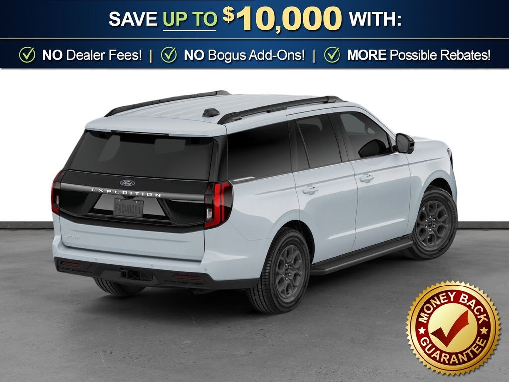 Space Silver Metallic 2026 Ford Expedition Active NFT RWD 10-Speed Automatic EcoBoost 3.5L V6 GTDi DOHC 24V Twin Turbocharged 3.31 Axle Ratio, 3rd row seats: split-bench, 4-Wheel Disc Brakes, 6 Speakers, ABS brakes, ActiveX-Trimmed Front Heated Captain's Chairs, Air Conditioning, Alloy wheels, AM/FM radio: SiriusXM with 360L, Apple CarPlay/Android Auto, Auto High-beam Headlights, Auto-dimming Rear-View mirror, Automatic temperature control, Brake assist, Bumpers: body-color, Cloth Front Captain's Chairs, Compass, Delay-off headlights, Driver door bin, Driver vanity mirror, Dual front impact airbags, Dual front side impact airbags, Electronic Stability Control, Emergency communication system: 911 Assist, Exterior Parking Camera Rear, Ford Connectivity Package (1-Year Included), Ford Digital Experience, Four wheel independent suspension, Front anti-roll bar, Front Bucket Seats, Front Center Armrest, Front dual zone A/C, Front License Plate Bracket, Front reading lights, Fully automatic headlights, Heated door mirrors, Illuminated entry, Low tire pressure warning, Navigation System, Occupant sensing airbag, Outside temperature display, Overhead airbag, Overhead console, Panic alarm, Passenger door bin, Passenger vanity mirror, Power door mirrors, Power driver seat, Power passenger seat, Power steering, Power windows, Radio data system, Radio: AM/FM Stereo with MP3 Capable, Rear air conditioning, Rear anti-roll bar, Rear reading lights, Rear window defroster, Rear window wiper, Reclining 3rd row seat, Remote keyless entry, Security system, SiriusXM with 360L, Speed control, Speed-sensing steering, Speed-Sensitive Wipers, Split folding rear seat, Spoiler, Steering wheel mounted audio controls, Tachometer, Telescoping steering wheel, Tilt steering wheel, Traction control, Trip computer, Variably intermittent wipers, Voltmeter, Wheels: 18" x 8.5" Dark Alloy Painted Aluminum.