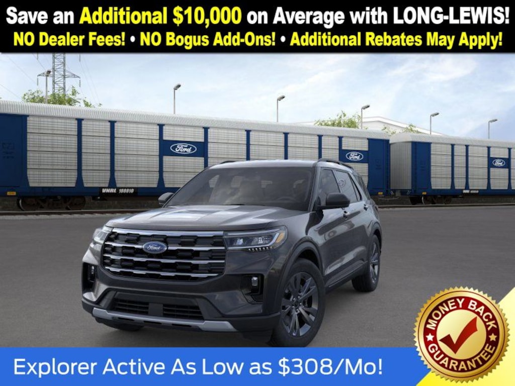 Agate Black Metallic 2026 Ford Explorer Active NFT 4WD 10-Speed Automatic 2.3L EcoBoost I-4 4WD, 3rd row seats: bench, 4-Wheel Disc Brakes, 6 Speakers, ABS brakes, Air Conditioning, Alloy wheels, AM/FM radio: SiriusXM with 360L, AM/FM Stereo, Apple CarPlay/Android Auto, Auto High-beam Headlights, Automatic temperature control, Brake assist, Bumpers: body-color, Compass, Delay-off headlights, Driver door bin, Driver vanity mirror, Dual front impact airbags, Dual front side impact airbags, Electronic Stability Control, Emergency communication system: 911 Assist, Exterior Parking Camera Rear, Four wheel independent suspension, Front anti-roll bar, Front Bucket Seats, Front Center Armrest, Front dual zone A/C, Front License Plate Bracket, Front reading lights, Fully automatic headlights, Heated door mirrors, Illuminated entry, Knee airbag, Low tire pressure warning, Navigation System, Occupant sensing airbag, Outside temperature display, Overhead airbag, Overhead console, Panic alarm, Passenger door bin, Passenger vanity mirror, Power door mirrors, Power driver seat, Power steering, Power windows, Rear air conditioning, Rear anti-roll bar, Rear reading lights, Rear window defroster, Rear window wiper, Remote keyless entry, Security system, Speed control, Speed-sensing steering, Speed-Sensitive Wipers, Split folding rear seat, Spoiler, Steering wheel mounted audio controls, Tachometer, Telescoping steering wheel, Tilt steering wheel, Traction control, Trip computer, Variably intermittent wipers, Wheels: 18" Sparkle Silver-Painted Aluminum, 4WD.