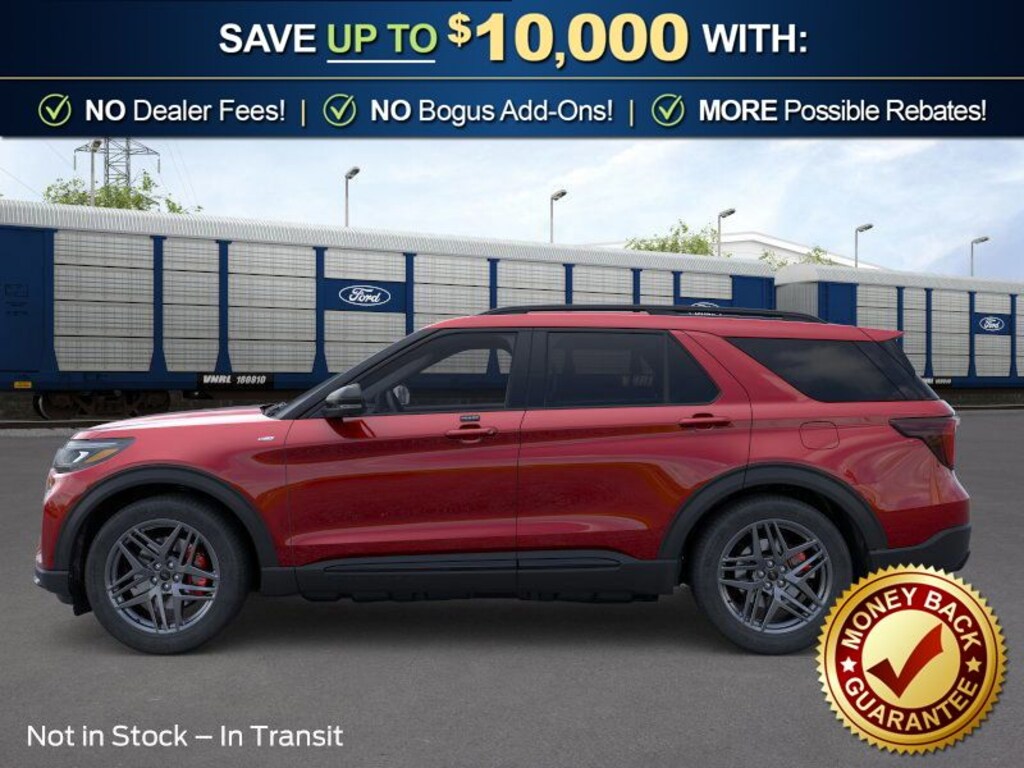 Rapid Red Metallic Tinted Clearcoat 2026 Ford Explorer ST-Line NFT RWD 10-Speed Automatic 2.3L EcoBoost I-4 10 Speakers, 110V/150W AC Power Outlet, 2nd Row Captain's Chairs w/E-Z Entry and Armrest, 2nd Row Heated Seats, 3rd row seats: bench, 4-Wheel Disc Brakes, ABS brakes, Air Conditioning, Alloy wheels, AM/FM radio: SiriusXM with 360L, Ambient Lighting, Apple CarPlay/Android Auto, Auto High-beam Headlights, Auto-Dimming Interior Rear-View Mirror, Automatic temperature control, BlueCruise (equipment + 1-Year + 90-Day Plan), BlueCruise Hardware, Brake assist, Bumpers: body-color, Compass, Delay-off headlights, Driver door bin, Driver vanity mirror, Dual front impact airbags, Dual front side impact airbags, Electronic Stability Control, Emergency communication system: 911 Assist, Exterior Parking Camera Rear, Ford Connectivity Package (one-Time Purchase - 7 Years), Four wheel independent suspension, Front anti-roll bar, Front Bucket Seats, Front Center Armrest, Front dual zone A/C, Front fog lights, Front License Plate Bracket, Front reading lights, Fully automatic headlights, Garage door transmitter, Heated door mirrors, Heated front seats, Heated steering wheel, Heated Unique Cloth Captain's Chairs, Illuminated entry, Knee airbag, Leather steering wheel, Low tire pressure warning, Manual-Folding Sideview Mirrors, Memory Driver's Seat, Navigation System, Occupant sensing airbag, Outside temperature display, Overhead airbag, Overhead console, Panic alarm, Passenger door bin, Passenger vanity mirror, Performance Brakes, Power door mirrors, Power driver seat, Power Liftgate, Power passenger seat, Power steering, Power windows, Premium Package, Radio: B&O Sound System by Bang and Olufsen, Rain-Sensing Wipers (front Only), Rear air conditioning, Rear anti-roll bar, Rear reading lights, Rear window defroster, Rear window wiper, Red Painted Performance Front and Rear Brake Calipers, Remote keyless entry, SecuriCode Keyless Entry Keypad, Security system, Speed control, Speed-sensing steering, Speed-Sensitive Wipers, Split folding rear seat, Spoiler, ST-Line Street Pack, Steering wheel mounted audio controls, Tachometer, Telescoping steering wheel, Tilt steering wheel, Traction control, Trip computer, Variably intermittent wipers, Wheels: 20" Ebony-Painted Machined Aluminum, Wheels: 21" Magnetite-Painted Aluminum.