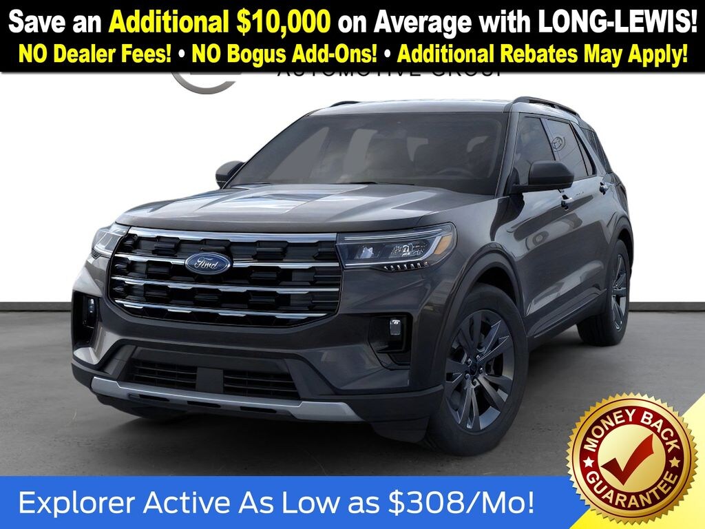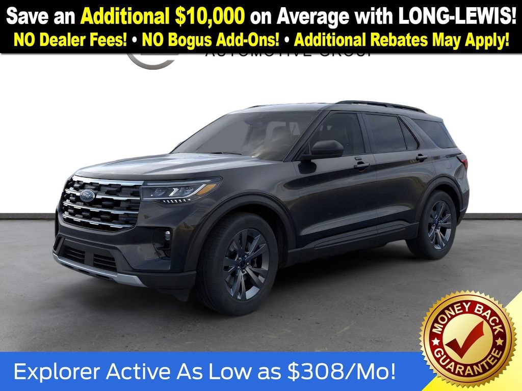 Agate Black Metallic 2026 Ford Explorer Active NFT 4WD 10-Speed Automatic 2.3L EcoBoost I-4 4WD, 3rd row seats: bench, 4-Wheel Disc Brakes, 6 Speakers, ABS brakes, Air Conditioning, Alloy wheels, AM/FM radio: SiriusXM with 360L, AM/FM Stereo, Apple CarPlay/Android Auto, Auto High-beam Headlights, Automatic temperature control, Brake assist, Bumpers: body-color, Compass, Delay-off headlights, Driver door bin, Driver vanity mirror, Dual front impact airbags, Dual front side impact airbags, Electronic Stability Control, Emergency communication system: 911 Assist, Exterior Parking Camera Rear, Four wheel independent suspension, Front anti-roll bar, Front Bucket Seats, Front Center Armrest, Front dual zone A/C, Front License Plate Bracket, Front reading lights, Fully automatic headlights, Heated door mirrors, Illuminated entry, Knee airbag, Low tire pressure warning, Navigation System, Occupant sensing airbag, Outside temperature display, Overhead airbag, Overhead console, Panic alarm, Passenger door bin, Passenger vanity mirror, Power door mirrors, Power driver seat, Power steering, Power windows, Rear air conditioning, Rear anti-roll bar, Rear reading lights, Rear window defroster, Rear window wiper, Remote keyless entry, Security system, Speed control, Speed-sensing steering, Speed-Sensitive Wipers, Split folding rear seat, Spoiler, Steering wheel mounted audio controls, Tachometer, Telescoping steering wheel, Tilt steering wheel, Traction control, Trip computer, Variably intermittent wipers, Wheels: 18" Sparkle Silver-Painted Aluminum, 4WD.