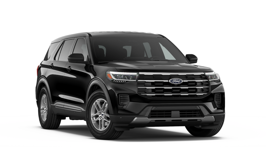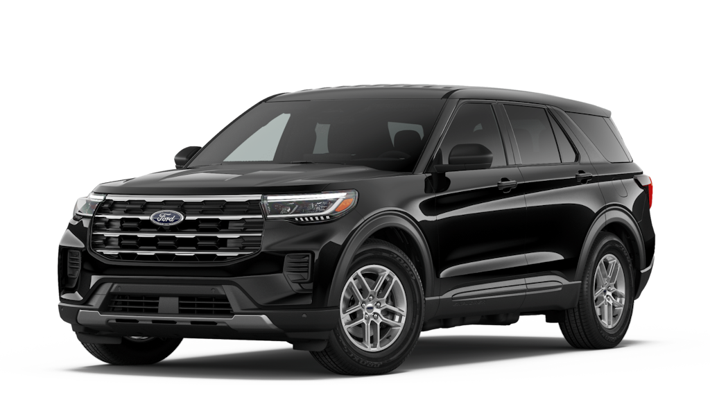 Agate Black Metallic 2026 Ford Explorer Active RWD 10-Speed Automatic 2.3L EcoBoost I-4 2nd Row 35/30/35 Bench w/E-Z Entry & Armrest, 3rd row seats: bench, 4-Wheel Disc Brakes, 6 Speakers, ABS brakes, Air Conditioning, Alloy wheels, AM/FM radio: SiriusXM with 360L, AM/FM Stereo, Apple CarPlay/Android Auto, Auto High-beam Headlights, Automatic temperature control, Brake assist, Bumpers: body-color, Compass, Delay-off headlights, Driver door bin, Driver vanity mirror, Dual front impact airbags, Dual front side impact airbags, Electronic Stability Control, Emergency communication system: 911 Assist, Exterior Parking Camera Rear, Four wheel independent suspension, Front anti-roll bar, Front Bucket Seats, Front Center Armrest, Front dual zone A/C, Front License Plate Bracket, Front reading lights, Fully automatic headlights, Heated ActiveX Seating Material Captain's Chairs, Heated door mirrors, Illuminated entry, Knee airbag, Low tire pressure warning, Navigation System, Occupant sensing airbag, Outside temperature display, Overhead airbag, Overhead console, Panic alarm, Passenger door bin, Passenger vanity mirror, Power driver seat, Power steering, Power windows, Rear air conditioning, Rear anti-roll bar, Rear reading lights, Rear window defroster, Rear window wiper, Remote keyless entry, Security system, Speed control, Speed-sensing steering, Speed-Sensitive Wipers, Split folding rear seat, Spoiler, Steering wheel mounted audio controls, Tachometer, Telescoping steering wheel, Tilt steering wheel, Traction control, Trip computer, Unique Cloth Captain's Chairs, Variably intermittent wipers, Wheels: 18" Sparkle Silver-Painted Aluminum.