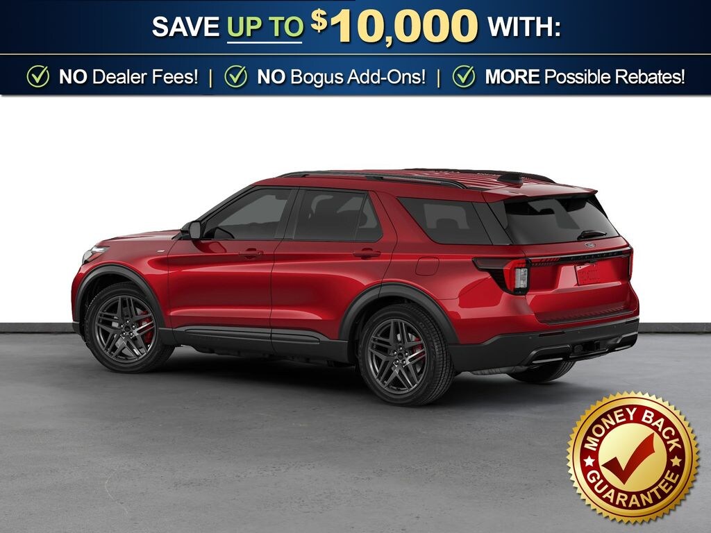 Rapid Red Metallic Tinted Clearcoat 2026 Ford Explorer ST-Line NFT RWD 10-Speed Automatic 2.3L EcoBoost I-4 10 Speakers, 110V/150W AC Power Outlet, 2nd Row Captain's Chairs w/E-Z Entry and Armrest, 2nd Row Heated Seats, 3rd row seats: bench, 4-Wheel Disc Brakes, ABS brakes, Air Conditioning, Alloy wheels, AM/FM radio: SiriusXM with 360L, Ambient Lighting, Apple CarPlay/Android Auto, Auto High-beam Headlights, Auto-Dimming Interior Rear-View Mirror, Automatic temperature control, BlueCruise (equipment + 1-Year + 90-Day Plan), BlueCruise Hardware, Brake assist, Bumpers: body-color, Compass, Delay-off headlights, Driver door bin, Driver vanity mirror, Dual front impact airbags, Dual front side impact airbags, Electronic Stability Control, Emergency communication system: 911 Assist, Exterior Parking Camera Rear, Four wheel independent suspension, Front anti-roll bar, Front Bucket Seats, Front Center Armrest, Front dual zone A/C, Front fog lights, Front License Plate Bracket, Front reading lights, Fully automatic headlights, Garage door transmitter, Heated door mirrors, Heated front seats, Heated steering wheel, Heated Unique Cloth Captain's Chairs, Illuminated entry, Knee airbag, Leather steering wheel, Low tire pressure warning, Manual-Folding Sideview Mirrors, Memory Driver's Seat, Navigation System, Occupant sensing airbag, Outside temperature display, Overhead airbag, Overhead console, Panic alarm, Passenger door bin, Passenger vanity mirror, Performance Brakes, Power door mirrors, Power driver seat, Power Liftgate, Power passenger seat, Power steering, Power windows, Premium Package, Radio: B&O Sound System by Bang and Olufsen, Rain-Sensing Wipers (front Only), Rear air conditioning, Rear anti-roll bar, Rear reading lights, Rear window defroster, Rear window wiper, Red Painted Performance Front and Rear Brake Calipers, Remote keyless entry, SecuriCode Keyless Entry Keypad, Security system, Speed control, Speed-sensing steering, Speed-Sensitive Wipers, Split folding rear seat, Spoiler, ST-Line Street Pack, Steering wheel mounted audio controls, Tachometer, Telescoping steering wheel, Tilt steering wheel, Traction control, Trip computer, Variably intermittent wipers, Wheels: 20" Ebony-Painted Machined Aluminum, Wheels: 21" Magnetite-Painted Aluminum.