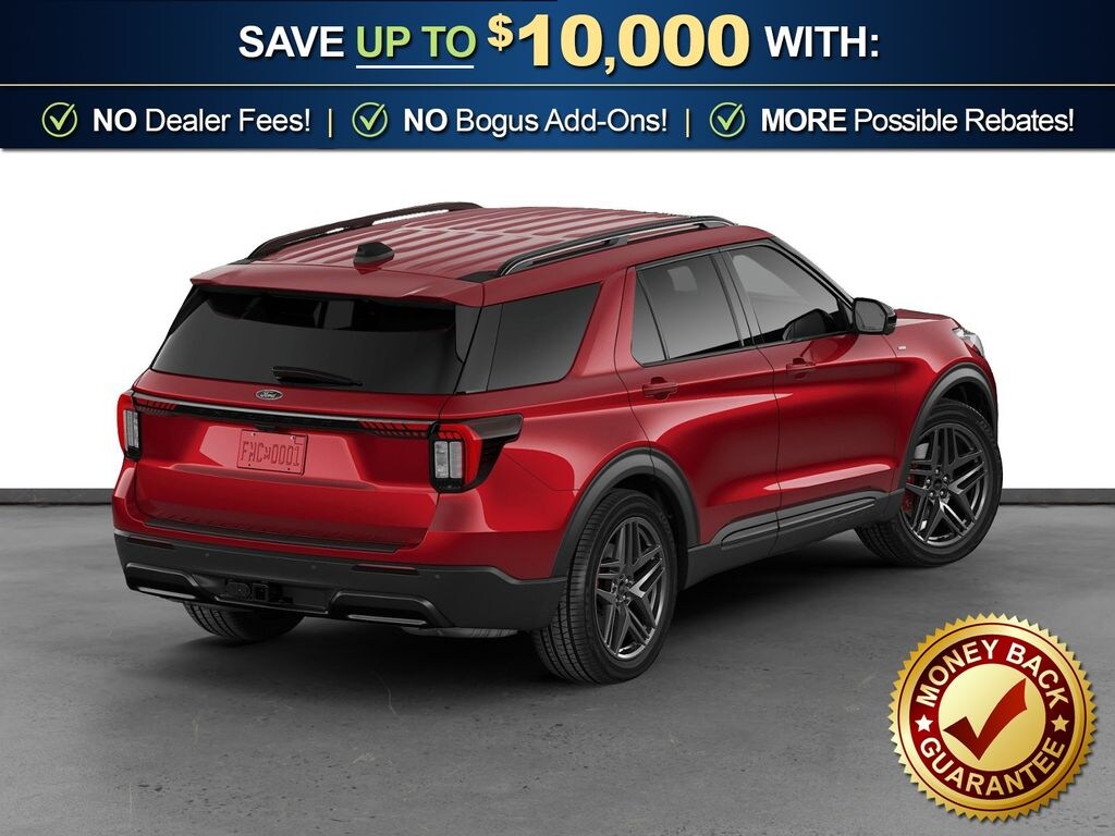Rapid Red Metallic Tinted Clearcoat 2026 Ford Explorer ST-Line NFT RWD 10-Speed Automatic 2.3L EcoBoost I-4 10 Speakers, 110V/150W AC Power Outlet, 2nd Row Captain's Chairs w/E-Z Entry and Armrest, 2nd Row Heated Seats, 3rd row seats: bench, 4-Wheel Disc Brakes, ABS brakes, Air Conditioning, Alloy wheels, AM/FM radio: SiriusXM with 360L, Ambient Lighting, Apple CarPlay/Android Auto, Auto High-beam Headlights, Auto-Dimming Interior Rear-View Mirror, Automatic temperature control, BlueCruise (equipment + 1-Year + 90-Day Plan), BlueCruise Hardware, Brake assist, Bumpers: body-color, Compass, Delay-off headlights, Driver door bin, Driver vanity mirror, Dual front impact airbags, Dual front side impact airbags, Electronic Stability Control, Emergency communication system: 911 Assist, Exterior Parking Camera Rear, Four wheel independent suspension, Front anti-roll bar, Front Bucket Seats, Front Center Armrest, Front dual zone A/C, Front fog lights, Front License Plate Bracket, Front reading lights, Fully automatic headlights, Garage door transmitter, Heated door mirrors, Heated front seats, Heated steering wheel, Heated Unique Cloth Captain's Chairs, Illuminated entry, Knee airbag, Leather steering wheel, Low tire pressure warning, Manual-Folding Sideview Mirrors, Memory Driver's Seat, Navigation System, Occupant sensing airbag, Outside temperature display, Overhead airbag, Overhead console, Panic alarm, Passenger door bin, Passenger vanity mirror, Performance Brakes, Power door mirrors, Power driver seat, Power Liftgate, Power passenger seat, Power steering, Power windows, Premium Package, Radio: B&O Sound System by Bang and Olufsen, Rain-Sensing Wipers (front Only), Rear air conditioning, Rear anti-roll bar, Rear reading lights, Rear window defroster, Rear window wiper, Red Painted Performance Front and Rear Brake Calipers, Remote keyless entry, SecuriCode Keyless Entry Keypad, Security system, Speed control, Speed-sensing steering, Speed-Sensitive Wipers, Split folding rear seat, Spoiler, ST-Line Street Pack, Steering wheel mounted audio controls, Tachometer, Telescoping steering wheel, Tilt steering wheel, Traction control, Trip computer, Variably intermittent wipers, Wheels: 20" Ebony-Painted Machined Aluminum, Wheels: 21" Magnetite-Painted Aluminum.