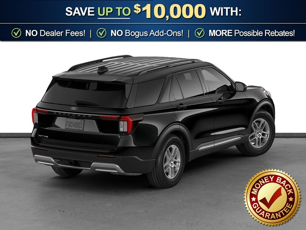 Agate Black Metallic 2026 Ford Explorer Active FCT RWD 10-Speed Automatic 2.3L EcoBoost I-4 3rd row seats: bench, 4-Wheel Disc Brakes, 6 Speakers, ABS brakes, Air Conditioning, Alloy wheels, AM/FM radio: SiriusXM with 360L, AM/FM Stereo, Apple CarPlay/Android Auto, Auto High-beam Headlights, Automatic temperature control, Brake assist, Bumpers: body-color, Compass, Delay-off headlights, Driver door bin, Driver vanity mirror, Dual front impact airbags, Dual front side impact airbags, Electronic Stability Control, Emergency communication system: 911 Assist, Exterior Parking Camera Rear, Four wheel independent suspension, Front anti-roll bar, Front Bucket Seats, Front Center Armrest, Front dual zone A/C, Front License Plate Bracket, Front reading lights, Fully automatic headlights, Heated door mirrors, Illuminated entry, Knee airbag, Low tire pressure warning, Navigation System, Occupant sensing airbag, Outside temperature display, Overhead airbag, Overhead console, Panic alarm, Passenger door bin, Passenger vanity mirror, Power door mirrors, Power driver seat, Power steering, Power windows, Rear air conditioning, Rear anti-roll bar, Rear reading lights, Rear window defroster, Rear window wiper, Remote keyless entry, Security system, Speed control, Speed-sensing steering, Speed-Sensitive Wipers, Split folding rear seat, Spoiler, Steering wheel mounted audio controls, Tachometer, Telescoping steering wheel, Tilt steering wheel, Traction control, Trip computer, Variably intermittent wipers, Wheels: 18" Sparkle Silver-Painted Aluminum.