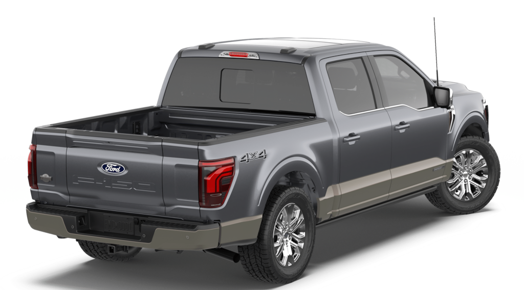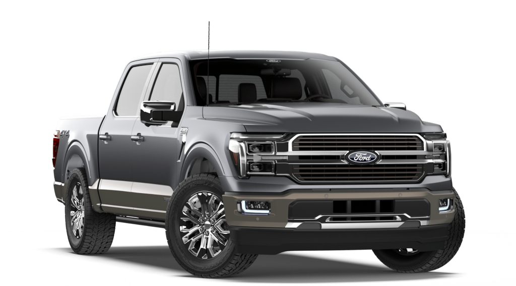 Carbonized Gray Metallic 2026 Ford F-150 King Ranch NFT 4WD 10-Speed Automatic 3.5L PowerBoost Full-Hybrid V6 3.5L PowerBoost Full-Hybrid V6, 4WD, 4-Wheel Disc Brakes, 8 Speakers, ABS brakes, Adjustable pedals, Air Conditioning, Alloy wheels, AM/FM radio: SiriusXM with 360L, Auto High-beam Headlights, Auto tilt-away steering wheel, Auto-dimming door mirrors, Auto-dimming Rear-View mirror, Automatic temperature control, Brake assist, Chrome wheels, Compass, Delay-off headlights, Driver door bin, Driver vanity mirror, Driver's Side SecuriCode Keyless-Entry Keypad, Dual front impact airbags, Dual front side impact airbags, Electronic Stability Control, Emergency communication system: SYNC 4 911 Assist, Ford Connectivity Package (1-Year Included), Front anti-roll bar, Front Bucket Seats, Front Center Armrest, Front dual zone A/C, Front fog lights, Front License Plate Bracket, Front reading lights, Front wheel independent suspension, Fully automatic headlights, Garage door transmitter, Genuine wood dashboard insert, Head-Up Display, Heated door mirrors, Heated front seats, Heated rear seats, Heated steering wheel, Illuminated entry, Internet access capable: 5G Modem - Ford Connectivity Package, King Ranch Multicontour Leather Bucket Seats, Leather steering wheel, Low tire pressure warning, Memory seat, Navigation system: Connected Navigation, Occupant sensing airbag, Outside temperature display, Overhead airbag, Overhead console, Panic alarm, Passenger door bin, Passenger vanity mirror, Pedal memory, Power door mirrors, Power driver seat, Power passenger seat, Power steering, Power windows, Pro Access Tailgate, Pro Power Onboard - 7.2KW, Radio data system, Radio: B&O Sound System by Bang and Olufsen, Rain sensing wipers, Rear reading lights, Rear seat center armrest, Rear step bumper, Rear window defroster, Remote keyless entry, Security system, Speed control, Split folding rear seat, Steering wheel memory, Steering wheel mounted audio controls, SYNC 4 with Enhanced Voice Recognition, Tachometer, Telescoping steering wheel, Tilt steering wheel, Traction control, Trip computer, Turn signal indicator mirrors, Twin Panel Moonroof, Variably intermittent wipers, Ventilated front seats, Wheels: 20" Chrome-Like PVD, 3.5L PowerBoost Full-Hybrid V6, 4WD.