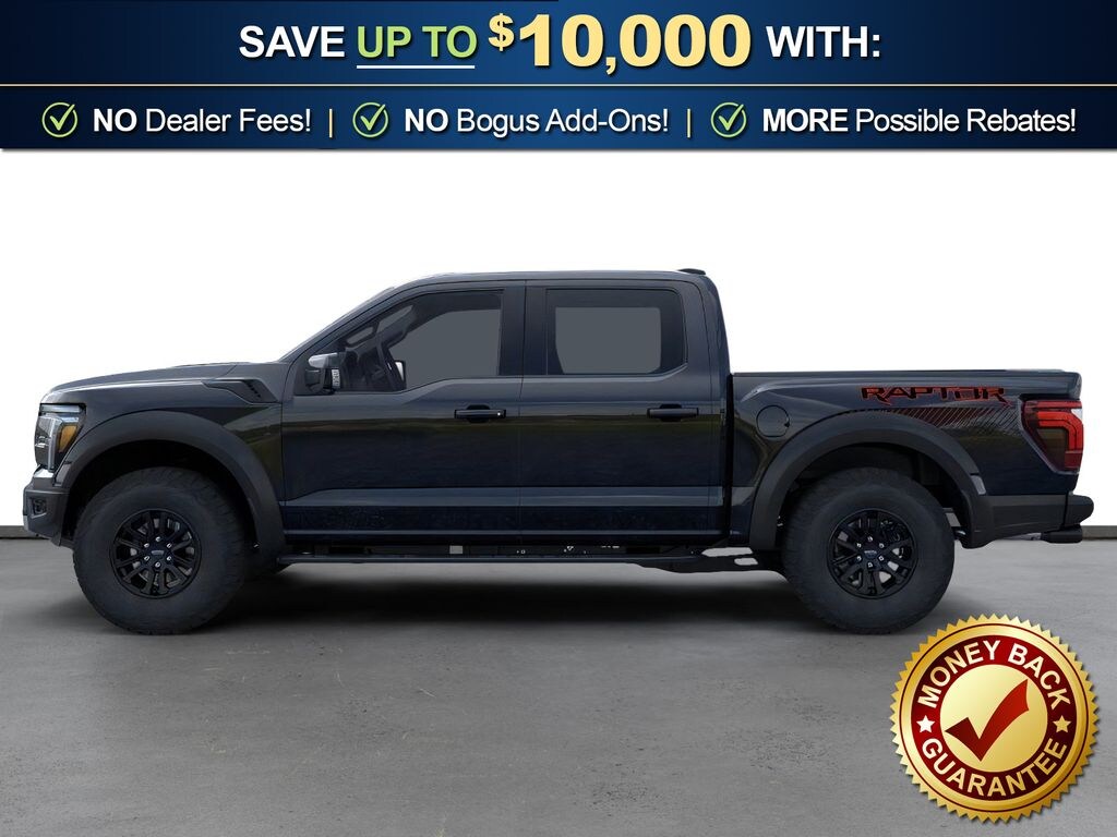 Agate Black Metallic 2026 Ford F-150 Raptor NFT 4WD 10-Speed Automatic 3.5L V6 EcoBoost 4WD, 14 Speakers, 17" Cast Aluminum Wheels, 4-Wheel Disc Brakes, ABS brakes, Adjustable pedals, Air Conditioning, Alloy wheels, AM/FM radio: SiriusXM with 360L, Auto High-beam Headlights, Auto tilt-away steering wheel, Auto-dimming door mirrors, Auto-dimming Rear-View mirror, Automatic temperature control, Brake assist, Bumpers: body-color, Compass, Delay-off headlights, Driver door bin, Driver vanity mirror, Dual front impact airbags, Dual front side impact airbags, Electronic Locking with 4.10 Axle Ratio, Electronic Stability Control, Emergency communication system: SYNC 4 911 Assist, Ford Connectivity Package (1-Year Included), Front anti-roll bar, Front Bucket Seats, Front Center Armrest, Front dual zone A/C, Front fog lights, Front License Plate Bracket, Front reading lights, Front wheel independent suspension, Fully automatic headlights, Garage door transmitter, Heated door mirrors, Heated front seats, Heated rear seats, Heated steering wheel, Illuminated entry, Internet access capable: 5G Modem - Ford Connectivity Package, Lane Departure Warning System, Leather steering wheel, Leather Trimmed Seats, Low tire pressure warning, Memory seat, Navigation system: Connected Navigation, Occupant sensing airbag, Outside temperature display, Overhead airbag, Overhead console, Panic alarm, Passenger door bin, Passenger vanity mirror, Pedal memory, Power door mirrors, Power driver seat, Power passenger seat, Power steering, Power windows, Radio data system, Radio: B&O Unleashed Sound System by Bang & Olufsen, Rain sensing wipers, Rear reading lights, Rear step bumper, Rear window defroster, RECARO with Code Orange Stitching Front Seats, Remote keyless entry, Security system, Speed control, Speed-sensing steering, Split folding rear seat, Steering wheel memory, Steering wheel mounted audio controls, SYNC 4 with Enhanced Voice Recognition, Tachometer, Telescoping steering wheel, Tilt steering wheel, Traction control, Trip computer, Turn signal indicator mirrors, Twin Panel Moonroof, Variably intermittent wipers, Ventilated front seats, 4WD.