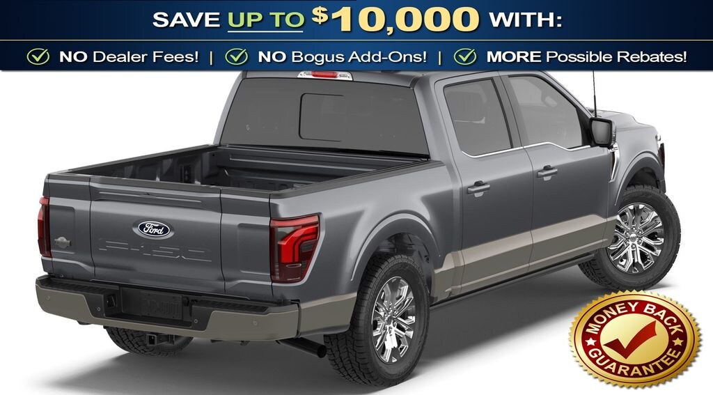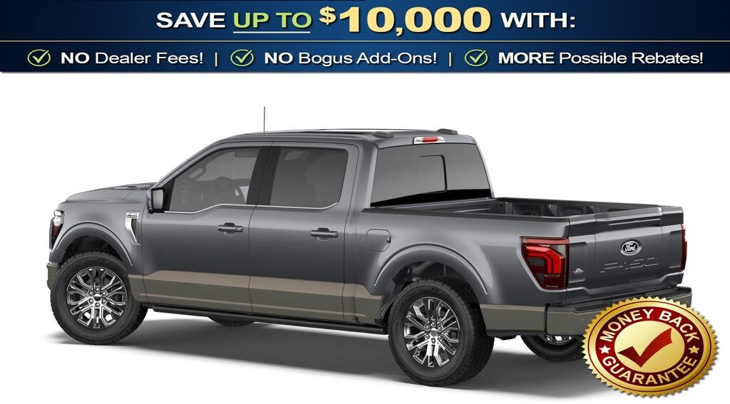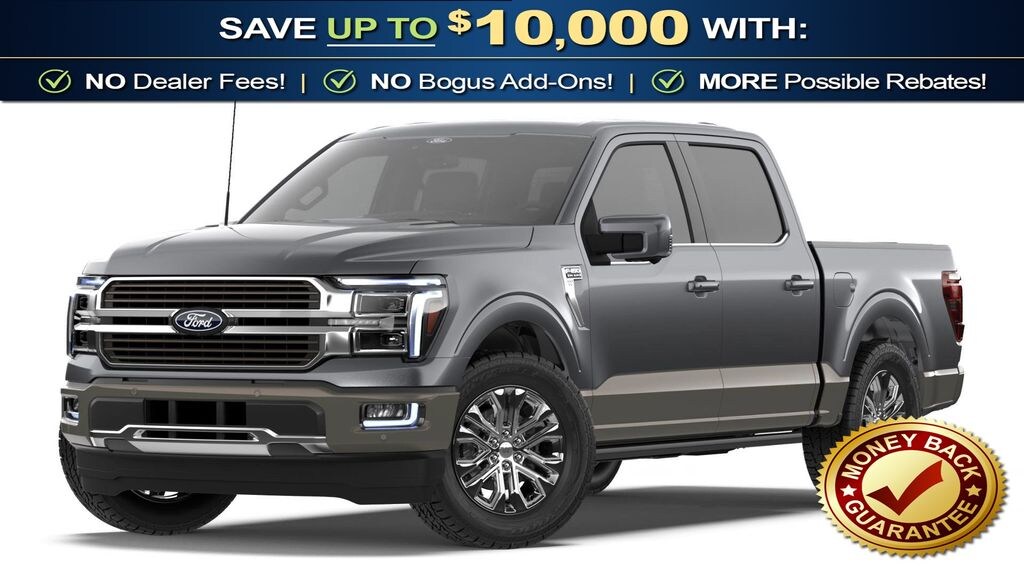 Carbonized Gray Metallic 2026 Ford F-150 King Ranch NFT 4WD 10-Speed Automatic 3.5L V6 EcoBoost 4WD, 4-Wheel Disc Brakes, 4x4 FX4 Off-Road Bodyside Decal, 8 Speakers, ABS brakes, Adjustable pedals, Air Conditioning, Alloy wheels, AM/FM radio: SiriusXM with 360L, Auto High-beam Headlights, Auto tilt-away steering wheel, Auto-dimming door mirrors, Auto-dimming Rear-View mirror, Automatic temperature control, Brake assist, Chrome wheels, Compass, Delay-off headlights, Driver door bin, Driver vanity mirror, Driver's Side SecuriCode Keyless-Entry Keypad, Dual front impact airbags, Dual front side impact airbags, Electronic Locking with 3.55 Axle Ratio, Electronic Stability Control, Emergency communication system: SYNC 4 911 Assist, Ford Connectivity Package (1-Year Included), Front anti-roll bar, Front Bucket Seats, Front Center Armrest, Front dual zone A/C, Front fog lights, Front License Plate Bracket, Front reading lights, Front wheel independent suspension, Fully automatic headlights, FX4 Off-Road Package, Garage door transmitter, Genuine wood dashboard insert, GVWR: 7,400 lbs Payload Package, Head-Up Display, Heated door mirrors, Heated front seats, Heated rear seats, Heated steering wheel, Hill Descent Control, Illuminated entry, Internet access capable: 5G Modem - Ford Connectivity Package, King Ranch Multicontour Leather Bucket Seats, Leather steering wheel, Low tire pressure warning, Memory seat, Navigation system: Connected Navigation, Occupant sensing airbag, Off-Road Tuned Front Shock Absorbers, Outside temperature display, Overhead airbag, Overhead console, Panic alarm, Passenger door bin, Passenger vanity mirror, Pedal memory, Power door mirrors, Power driver seat, Power passenger seat, Power steering, Power windows, Pro Access Tailgate, Radio data system, Radio: B&O Sound System by Bang and Olufsen, Rain sensing wipers, Rear reading lights, Rear seat center armrest, Rear step bumper, Rear window defroster, Remote keyless entry, Security system, Speed control, Split folding rear seat, Steering wheel memory, Steering wheel mounted audio controls, SYNC 4 with Enhanced Voice Recognition, Tachometer, Telescoping steering wheel, Tilt steering wheel, Traction control, Trip computer, Turn signal indicator mirrors, Twin Panel Moonroof, Variably intermittent wipers, Ventilated front seats, Wheels: 20" Chrome-Like PVD, 4WD.