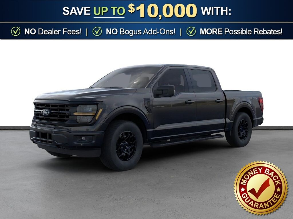 Agate Black Metallic 2026 Ford F-150 XLT NFT 4WD 10-Speed Automatic 3.5L V6 EcoBoost 4WD, 18" Painted Aluminum Wheels, 4-Wheel Disc Brakes, 7 Speakers, ABS brakes, Air Conditioning, Alloy wheels, AM/FM radio: SiriusXM with 360L, Auto High-beam Headlights, Brake assist, Bumpers: body-color, Cloth 40/Console/40 Front Seats, Compass, Console Worksurface, Delay-off headlights, Driver door bin, Driver vanity mirror, Dual front impact airbags, Dual front side impact airbags, Electronic Stability Control, Emergency communication system: SYNC 4 911 Assist, Front anti-roll bar, Front Center Armrest, Front fog lights, Front License Plate Bracket, Front reading lights, Front wheel independent suspension, Fully automatic headlights, Heated door mirrors, Illuminated entry, Internet access capable: 5G Modem - Ford Connectivity Package, Low tire pressure warning, Mobile Office Package, Occupant sensing airbag, Outside temperature display, Overhead airbag, Overhead console, Panic alarm, Partitioned Lockable Rear Storage, Passenger door bin, Passenger vanity mirror, Power door mirrors, Power steering, Power windows, Radio data system, Radio: AM/FM Stereo with SiriusXM 360L, Rear reading lights, Rear step bumper, Rear window defroster, Remote keyless entry, Security system, Speed control, Split folding rear seat, Steering wheel mounted audio controls, SYNC 4 with Enhanced Voice Recognition, Tachometer, Telescoping steering wheel, Tilt steering wheel, Tow/Haul Package, Traction control, Trip computer, Unique Sport Cloth 40/Console/40 Front-Seats, Variably intermittent wipers, XLT Black Appearance Package, 4WD.