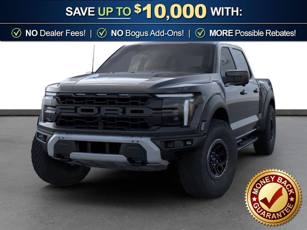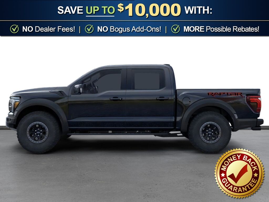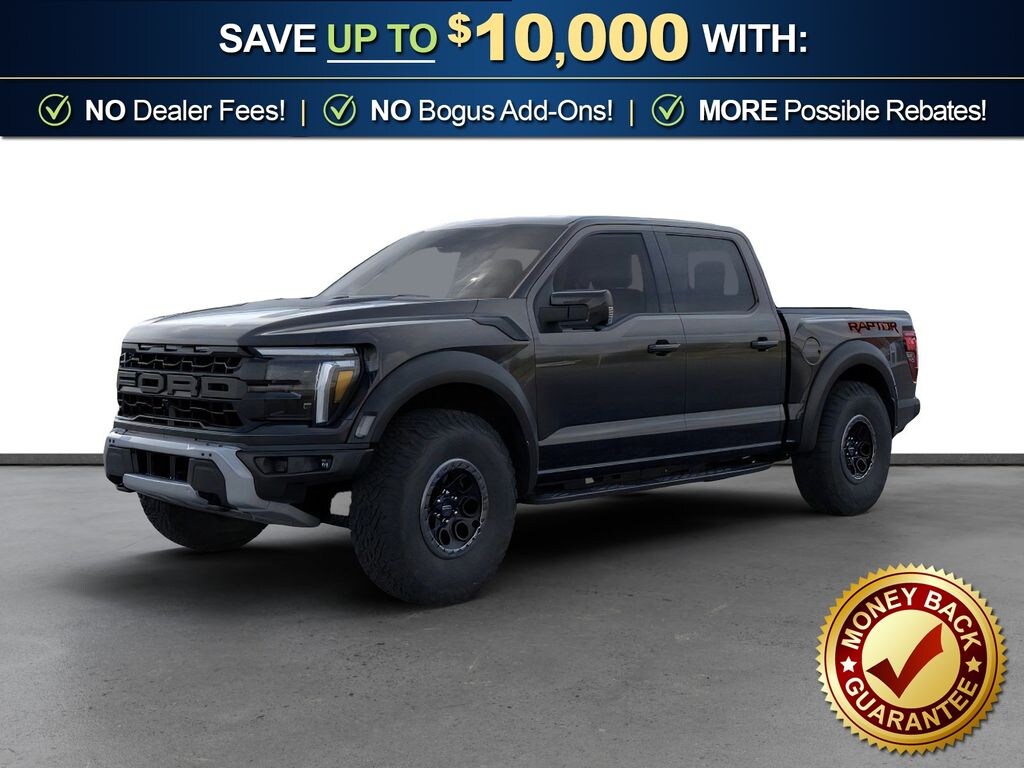 Agate Black Metallic 2026 Ford F-150 Raptor NFT 4WD 10-Speed Automatic 3.5L V6 EcoBoost High Output 4WD, 14 Speakers, 17" Cast Aluminum Wheels, 4-Wheel Disc Brakes, ABS brakes, Adjustable pedals, Air Conditioning, Alloy wheels, AM/FM radio: SiriusXM with 360L, Auto High-beam Headlights, Auto tilt-away steering wheel, Auto-dimming door mirrors, Auto-dimming Rear-View mirror, Automatic temperature control, Brake assist, Bumpers: body-color, Compass, Delay-off headlights, Driver door bin, Driver vanity mirror, Driver's Side SecuriCode Keyless-Entry Keypad, Dual front impact airbags, Dual front side impact airbags, Electronic Locking with 4.10 Axle Ratio, Electronic Stability Control, Emergency communication system: SYNC 4 911 Assist, Ford Connectivity Package (1-Year Included), Front anti-roll bar, Front Bucket Seats, Front Center Armrest, Front dual zone A/C, Front fog lights, Front License Plate Bracket, Front reading lights, Front wheel independent suspension, Fully automatic headlights, Garage door transmitter, Heated door mirrors, Heated front seats, Heated rear seats, Heated steering wheel, Illuminated entry, Internet access capable: 5G Modem - Ford Connectivity Package, Lane Departure Warning System, Leather steering wheel, Leather Trimmed Seats, Low tire pressure warning, Memory seat, Navigation system: Connected Navigation, Occupant sensing airbag, Outside temperature display, Overhead airbag, Overhead console, Panic alarm, Passenger door bin, Passenger vanity mirror, Pedal memory, Power door mirrors, Power driver seat, Power passenger seat, Power steering, Power windows, Radio data system, Radio: B&O Unleashed Sound System by Bang & Olufsen, Rain sensing wipers, Rear reading lights, Rear step bumper, Rear window defroster, RECARO Unique Leather Front Seats, RECARO with Code Orange Stitching Front Seats, Remote keyless entry, Security system, Speed control, Speed-sensing steering, Split folding rear seat, Steering wheel memory, Steering wheel mounted audio controls, SYNC 4 with Enhanced Voice Recognition, Tachometer, Telescoping steering wheel, Tilt steering wheel, Traction control, Trip computer, Turn signal indicator mirrors, Twin Panel Moonroof, Variably intermittent wipers, Ventilated front seats, 4WD.