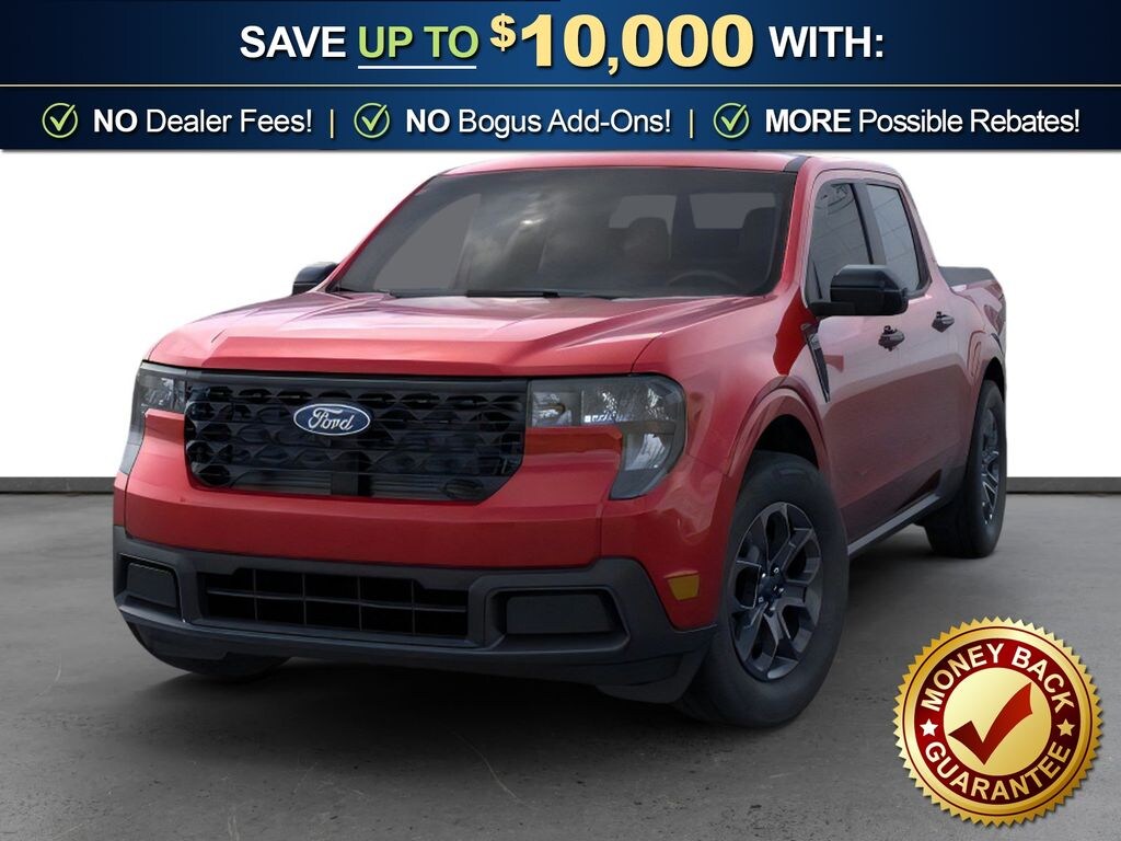 Ruby Red Metallic Tinted Clearcoat 2026 Ford Maverick XLT NFT AWD CVT 2.5L I-4 Hybrid 2.5L I-4 Hybrid, 2.91 Axle Ratio, 4-Wheel Disc Brakes, 4K Tow Package, 6 Speakers, ABS brakes, Air Conditioning, Alloy wheels, AM/FM radio: SiriusXM with 360L, Apple CarPlay/Android Auto, Auto High Beams, Auto High-beam Headlights, Automatic temperature control, BLIS with Cross-Traffic Alert and Trailer Coverage, Brake assist, Bumpers: body-color, Compass, Delay-off headlights, Driver door bin, Driver vanity mirror, Dual front impact airbags, Dual front side impact airbags, Electronic Stability Control, Emergency communication system: SYNC 4 911 Assist, Exit Warning, Exterior Parking Camera Rear, Ford Co-Pilot360, Ford Connectivity Package (1-Year Included), Four wheel independent suspension, Front anti-roll bar, Front Bucket Seats, Front Center Armrest, Front reading lights, Fully automatic headlights, Heated Mirror with Painted Black Skull Caps, Heated Seats, Illuminated entry, Internet access capable: 5G Modem - Ford Connectivity Package, Intersection Assist, Knee airbag, Lane-Keeping System, LED Box Lighting, Low tire pressure warning, Occupant sensing airbag, Outside temperature display, Overhead airbag, Overhead console, Panic alarm, Passenger door bin, Passenger vanity mirror, Power door mirrors, Power Glass Manual-Folding Mirrors, Power steering, Power windows, Pre-Collision Assist with Automatic Emergency Braking, Pro Power Onboard - 400W, Radio data system, Radio: AM/FM Stereo with 6 Speakers, Rear anti-roll bar, Rear Cross Traffic Braking, Rear Parking Sensors, Rear seat center armrest, Rear step bumper, Rear-View Camera, Remote keyless entry, Remote Start System, Security system, SiriusXM with 360L, Soft Vinyl Wrapped Heated Steering Wheel, Speed control, Speed-sensing steering, Steering wheel mounted audio controls, SYNC 4 with Enhanced Voice Recognition, Telescoping steering wheel, Tilt steering wheel, Traction control, Trailer Brake Controller, Trailer Hitch (class III) 2" Receiver, Trip computer, Unique Cloth Front Bucket Seats, Upgraded Cooling Fan, Wheels: 17" Carbonized Gray Painted Aluminum, XLT Luxury Package, 2.5L I-4 Hybrid.