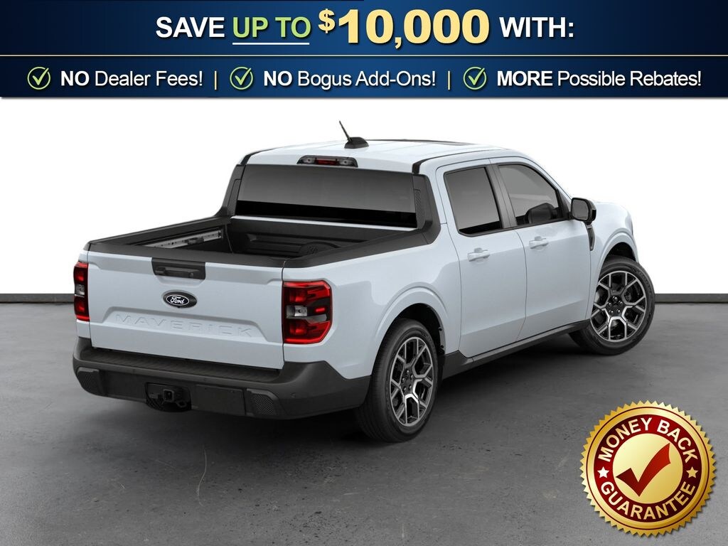 Space White Metallic 2026 Ford Maverick Lariat NFT AWD CVT 2.5L I-4 Hybrid 2.5L I-4 Hybrid, 2.91 Axle Ratio, 4-Wheel Disc Brakes, 4K Tow Package, 8 Speakers, ABS brakes, ActiveX Trimmed Heated Front Bucket Seats, Air Conditioning, Alloy wheels, AM/FM radio: SiriusXM with 360L, Apple CarPlay/Android Auto, Auto High-beam Headlights, Automatic temperature control, Brake assist, Bumpers: body-color, Compass, Delay-off headlights, Driver door bin, Driver vanity mirror, Dual front impact airbags, Dual front side impact airbags, Electronic Stability Control, Emergency communication system: SYNC 4 911 Assist, Exterior Parking Camera Rear, Ford Connectivity Package (1-Year Included), Four wheel independent suspension, Front anti-roll bar, Front Bucket Seats, Front Center Armrest, Front dual zone A/C, Front reading lights, Fully automatic headlights, Heated door mirrors, Heated front seats, Heated steering wheel, Illuminated entry, Internet access capable: 5G Modem - Ford Connectivity Package, Knee airbag, Low tire pressure warning, Navigation system: Connected Navigation, Occupant sensing airbag, Outside temperature display, Overhead airbag, Overhead console, Panic alarm, Passenger door bin, Passenger vanity mirror, Power door mirrors, Power driver seat, Power Moonroof, Power steering, Power windows, Radio data system, Radio: B&O Sound System by Bang and Olufsen, Rear anti-roll bar, Rear seat center armrest, Rear step bumper, Remote keyless entry, Security system, SiriusXM with 360L, Speed control, Speed-sensing steering, Steering wheel mounted audio controls, SYNC 4 with Enhanced Voice Recognition, Telescoping steering wheel, Tilt steering wheel, Traction control, Trailer Brake Controller, Trailer Hitch (class III) 2" Receiver, Trip computer, Upgraded Cooling Fan, Wheels: 19" Machined Aluminum Painted, 2.5L I-4 Hybrid.