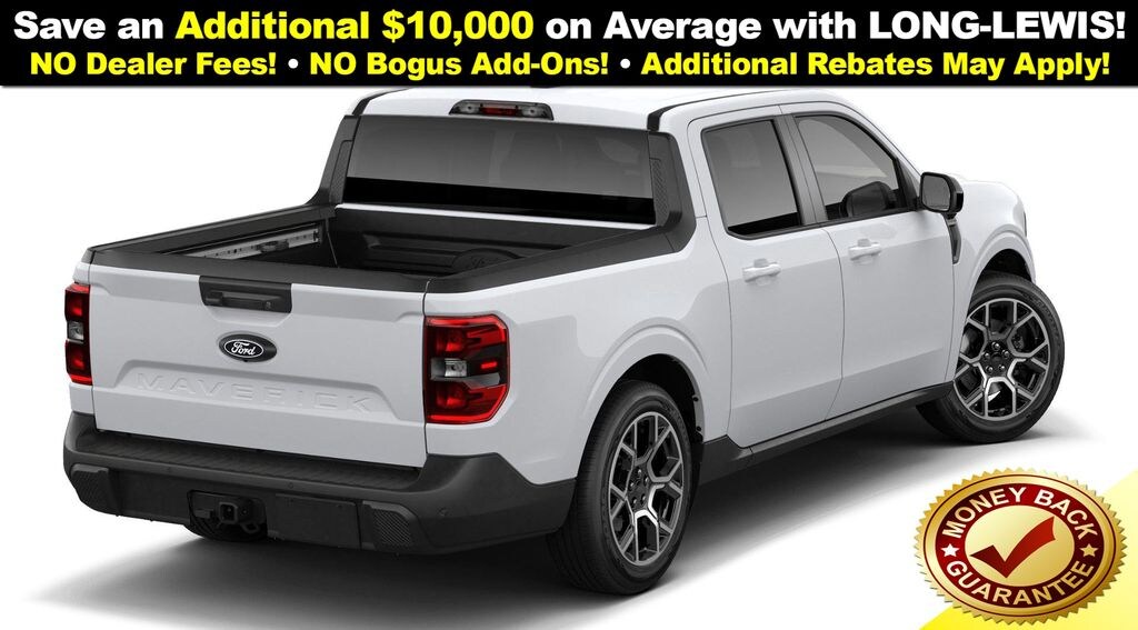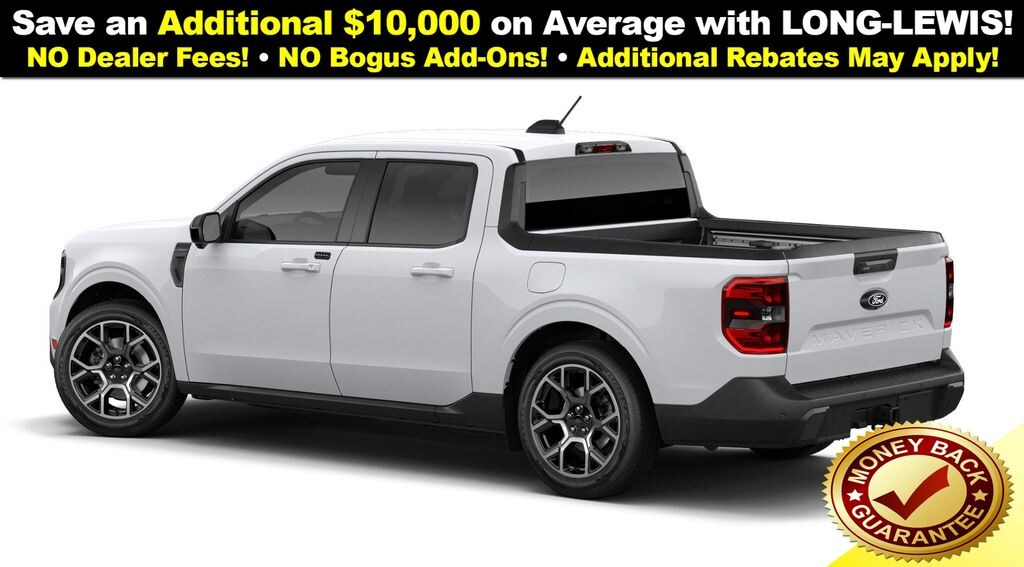 Oxford White 2026 Ford Maverick Lariat NFT AWD CVT 2.5L I-4 Hybrid 2.5L I-4 Hybrid, 2.91 Axle Ratio, 4-Wheel Disc Brakes, 8 Speakers, ABS brakes, ActiveX Trimmed Heated Front Bucket Seats, Air Conditioning, Alloy wheels, AM/FM radio: SiriusXM with 360L, Apple CarPlay/Android Auto, Auto High-beam Headlights, Automatic temperature control, Brake assist, Bumpers: body-color, Compass, Delay-off headlights, Driver door bin, Driver vanity mirror, Dual front impact airbags, Dual front side impact airbags, Electronic Stability Control, Emergency communication system: SYNC 4 911 Assist, Exterior Parking Camera Rear, Ford Connectivity Package (1-Year Included), Four wheel independent suspension, Front anti-roll bar, Front Bucket Seats, Front Center Armrest, Front dual zone A/C, Front reading lights, Fully automatic headlights, Heated door mirrors, Heated front seats, Heated steering wheel, Illuminated entry, Internet access capable: 5G Modem - Ford Connectivity Package, Knee airbag, Low tire pressure warning, Navigation system: Connected Navigation, Occupant sensing airbag, Outside temperature display, Overhead airbag, Overhead console, Panic alarm, Passenger door bin, Passenger vanity mirror, Power door mirrors, Power driver seat, Power steering, Power windows, Radio data system, Radio: B&O Sound System by Bang and Olufsen, Rear anti-roll bar, Rear seat center armrest, Rear step bumper, Remote keyless entry, Security system, SiriusXM with 360L, Speed control, Speed-sensing steering, Steering wheel mounted audio controls, SYNC 4 with Enhanced Voice Recognition, Telescoping steering wheel, Tilt steering wheel, Traction control, Trip computer, Wheels: 19" Machined Aluminum Painted, 2.5L I-4 Hybrid.