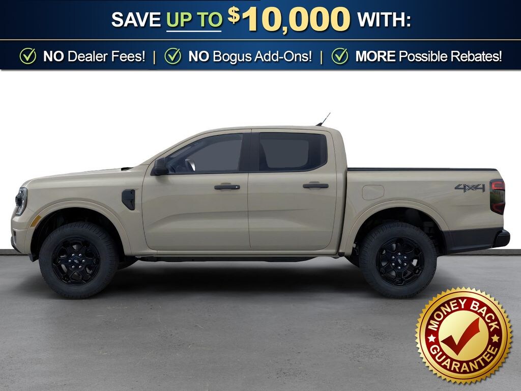 Desert Sand 2026 Ford Ranger XLT NFT 4WD 10-Speed Automatic EcoBoost 2.3L I4 GTDi DOHC Turbocharged VCT 4WD, 4-Wheel Disc Brakes, 6 Speakers, ABS brakes, Air Conditioning, Alloy wheels, AM/FM radio: SiriusXM with 360L, AM/FM Stereo, Auto High-beam Headlights, Auto-dimming Rear-View mirror, Black Appearance Package, Black Center Bar and Surround Grille, Black Rear Bumper, Body-Color Painted Front Fascia, Brake assist, Cloth Front Bucket Seats, Compass, Delay-off headlights, Driver door bin, Driver vanity mirror, Dual front impact airbags, Dual front side impact airbags, Electronic Stability Control, Emergency communication system: SYNC 4 911 Assist, Front and Rear Black Ford Ovals, Front anti-roll bar, Front Bucket Seats, Front Center Armrest, Front fog lights, Front License Plate Bracket, Front reading lights, Front wheel independent suspension, Fully automatic headlights, Gray Painted Center Bar and Grille Surround, Gray Painted Front Fascia and Rear Bumper, Illuminated entry, Leather Shift Knob, Low tire pressure warning, Navigation system: Connected Navigation, Occupant sensing airbag, Outside temperature display, Overhead airbag, Overhead console, Painted Body-Color Wheel Lip Molding, Panic alarm, Passenger door bin, Passenger vanity mirror, Power door mirrors, Power steering, Power windows, Rear reading lights, Rear seat center armrest, Rear step bumper, Rear window defroster, Remote keyless entry, Security system, SiriusXM with 360L and 3-Month Trial Subscription, Speed control, Speed-sensing steering, Sport Appearance Package, Sport Box Decal, Steering wheel mounted audio controls, SYNC 4A with Connected Navigation, Telescoping steering wheel, Tilt steering wheel, Traction control, Trip computer, Unique Carpet Mats, Variably intermittent wipers, Voltmeter, Wheels: 17 Inch Gray-Painted Aluminum Alloy, Wheels: 18" Black Painted, 4WD.