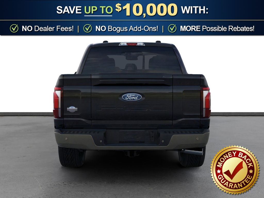 Agate Black Metallic 2026 Ford F-150 King Ranch NFT 4WD 10-Speed Automatic 3.5L V6 EcoBoost 4WD, 4-Wheel Disc Brakes, 4x4 FX4 Off-Road Bodyside Decal, 8 Speakers, ABS brakes, Adjustable pedals, Air Conditioning, Alloy wheels, AM/FM radio: SiriusXM with 360L, Auto High-beam Headlights, Auto tilt-away steering wheel, Auto-dimming door mirrors, Auto-dimming Rear-View mirror, Automatic temperature control, Brake assist, Chrome wheels, Compass, Delay-off headlights, Driver door bin, Driver vanity mirror, Driver's Side SecuriCode Keyless-Entry Keypad, Dual front impact airbags, Dual front side impact airbags, Electronic Locking with 3.55 Axle Ratio, Electronic Stability Control, Emergency communication system: SYNC 4 911 Assist, Ford Connectivity Package (1-Year Included), Front anti-roll bar, Front Bucket Seats, Front Center Armrest, Front dual zone A/C, Front fog lights, Front License Plate Bracket, Front reading lights, Front wheel independent suspension, Fully automatic headlights, FX4 Off-Road Package, Garage door transmitter, Genuine wood dashboard insert, GVWR: 7,400 lbs Payload Package, Heated door mirrors, Heated front seats, Heated rear seats, Heated steering wheel, Hill Descent Control, Illuminated entry, Internet access capable: 5G Modem - Ford Connectivity Package, King Ranch Multicontour Leather Bucket Seats, Leather steering wheel, Low tire pressure warning, Memory seat, Navigation system: Connected Navigation, Occupant sensing airbag, Off-Road Tuned Front Shock Absorbers, Outside temperature display, Overhead airbag, Overhead console, Panic alarm, Passenger door bin, Passenger vanity mirror, Pedal memory, Power door mirrors, Power driver seat, Power passenger seat, Power steering, Power windows, Pro Access Tailgate, Radio data system, Radio: B&O Sound System by Bang and Olufsen, Rain sensing wipers, Rear reading lights, Rear seat center armrest, Rear step bumper, Rear window defroster, Remote keyless entry, Security system, Speed control, Split folding rear seat, Steering wheel memory, Steering wheel mounted audio controls, SYNC 4 with Enhanced Voice Recognition, Tachometer, Telescoping steering wheel, Tilt steering wheel, Traction control, Trip computer, Turn signal indicator mirrors, Twin Panel Moonroof, Variably intermittent wipers, Ventilated front seats, Wheels: 20" Chrome-Like PVD, 4WD.