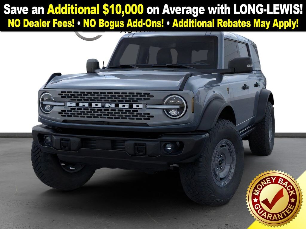 Sasquatch Package (High Clearance Fender Flares, High Clearance Suspension, Position-Sensitive Bilstein Shock Absorbers, and Wheels: 17" Carbonized Gray Painted Aluminum), 4-Wheel Disc Brakes, 7 Speakers, ABS brakes, Air Conditioning, Alloy wheels, AM/FM radio: SiriusXM with 360L, AM/FM Stereo, Auto High-beam Headlights, Auto-dimming Rear-View mirror, Body Color-Painted Hard Top, Brake assist, Compass, Delay-off headlights, Driver door bin, Driver vanity mirror, Dual front impact airbags, Dual front side impact airbags, Electronic Stability Control, Emergency communication system: 911 Assist, Exterior Parking Camera Rear, Front anti-roll bar, Front Bucket Seats, Front Center Armrest, Front fog lights, Front reading lights, Front wheel independent suspension, Fully automatic headlights, Hard Top Sound Deadening Headliner, Heated door mirrors, Heated front seats, Heated steering wheel, Illuminated entry, Integrated roll-over protection, Internet access capable: FordPass Connect, Leather Shift Knob, Low tire pressure warning, Marine Grade Vinyl Heated Bucket Seats, Occupant sensing airbag, Outside temperature display, Overhead airbag, Overhead console, Panic alarm, Passenger door bin, Passenger vanity mirror, Power door mirrors, Power steering, Power windows, Radio data system, Rear-Window Defroster & Washer, Remote keyless entry, Security system, SiriusXM w/360L, Speed control, Split folding rear seat, Steering wheel mounted audio controls, SYNC 4, Tachometer, Telescoping steering wheel, Tilt steering wheel, Traction control, Trip computer, Variably intermittent wipers, Voltmeter, and Wheels: 17" Carbonized Gray-Painted Aluminum. Price includes: $2500 - Retail Customer Cash. Exp. 03/31/2026