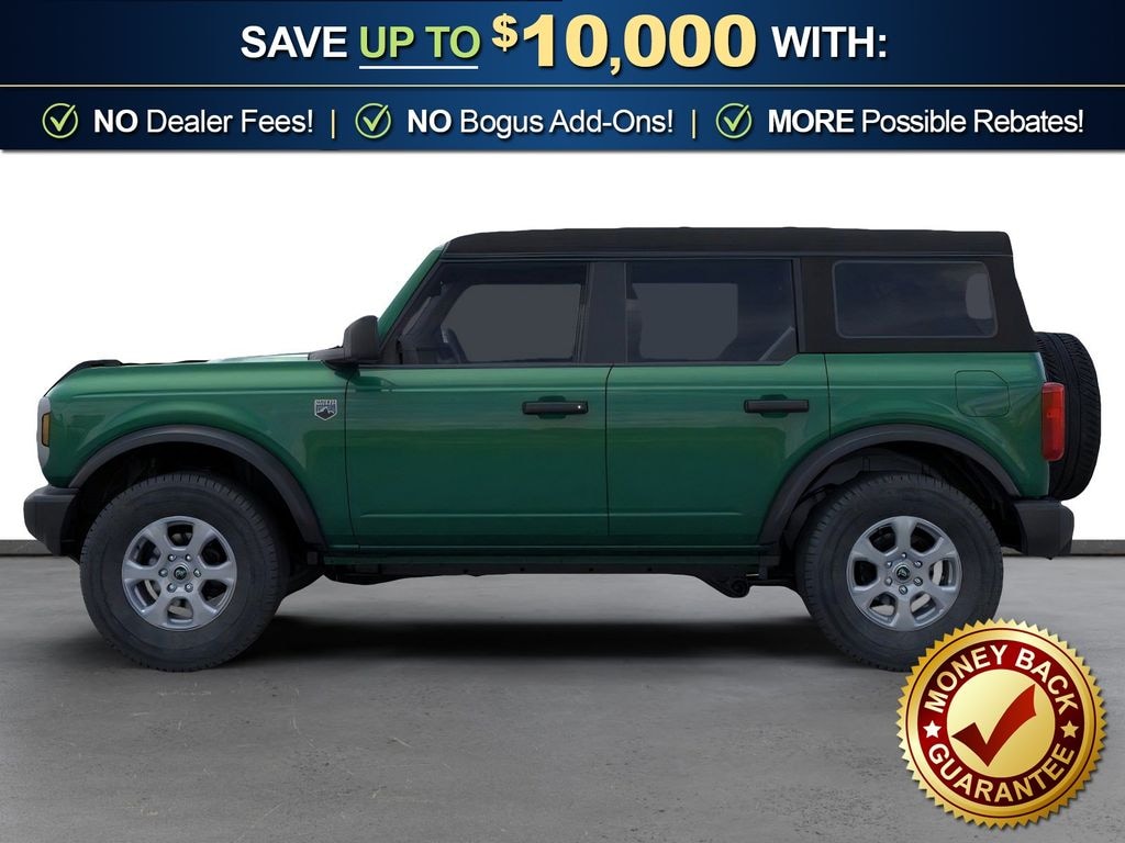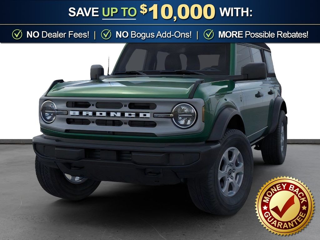 Eruption Green Metallic 2025 Ford Bronco Big Bend FCT 4WD 10-Speed Automatic 2.3L EcoBoost I-4 4-Wheel Disc Brakes, 4.46 Axle Ratio, 7 Speakers, ABS brakes, Air Conditioning, Alloy wheels, AM/FM radio: SiriusXM with 360L, AM/FM Stereo, Auto High-beam Headlights, Brake assist, Cloth Bucket Seats, Compass, Delay-off headlights, Driver door bin, Driver vanity mirror, Dual front impact airbags, Dual front side impact airbags, Electronic Stability Control, Emergency communication system: 911 Assist, Exterior Parking Camera Rear, Front anti-roll bar, Front Bucket Seats, Front Center Armrest, Front License Plate Bracket, Front reading lights, Front wheel independent suspension, Fully automatic headlights, Heated door mirrors, Illuminated entry, Integrated roll-over protection, Internet access capable: FordPass Connect, Leather Shift Knob, Low tire pressure warning, Occupant sensing airbag, Outside temperature display, Overhead airbag, Overhead console, Panic alarm, Passenger door bin, Passenger vanity mirror, Power door mirrors, Power steering, Power windows, Radio data system, Remote keyless entry, Security system, SiriusXM w/360L, Speed control, Split folding rear seat, Steering wheel mounted audio controls, SYNC 4, Tachometer, Telescoping steering wheel, Tilt steering wheel, Traction control, Trip computer, Variably intermittent wipers, Wheels: 17" Carbonized Gray-Painted Aluminum. Price includes: $2500 - Retail Customer Cash. Exp. 03/31/2026