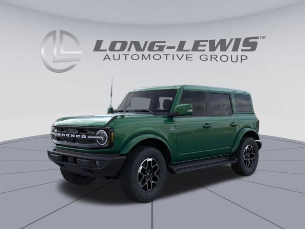 Eruption Green Metallic 2025 Ford Bronco Outer Banks 4WD 10-Speed Automatic 2.7L EcoBoost V6 18" Bright Machined Aluminum Wheels, 3.73 Axle Ratio, 4-Wheel Disc Brakes, 7 Speakers, ABS brakes, Air Conditioning, Alloy wheels, AM/FM radio: SiriusXM with 360L, AM/FM Stereo, Auto High-beam Headlights, Auto-dimming Rear-View mirror, Automatic temperature control, Brake assist, Compass, Connected Navigation, Delay-off headlights, Driver door bin, Driver vanity mirror, Dual front impact airbags, Dual front side impact airbags, Electronic Stability Control, Emergency communication system: 911 Assist, Exterior Parking Camera Rear, Front anti-roll bar, Front Bucket Seats, Front Center Armrest, Front dual zone A/C, Front fog lights, Front License Plate Bracket, Front reading lights, Front wheel independent suspension, Fully automatic headlights, Hard Top Sound Deadening Headliner, Heated door mirrors, Heated front seats, Heated Leather-Trimmed/Vinyl Bucket Seats, Heated steering wheel, Illuminated entry, Integrated roll-over protection, Leather Shift Knob, Low tire pressure warning, Navigation system: Connected Navigation, Occupant sensing airbag, Outside temperature display, Overhead airbag, Overhead console, Painted Hard Top, Panic alarm, Passenger door bin, Passenger vanity mirror, Power door mirrors, Power driver seat, Power passenger seat, Power steering, Power windows, Radio data system, Rear seat center armrest, Rear-Window Defroster & Washer, Remote keyless entry, Security system, SiriusXM w/360L, Speed control, Split folding rear seat, Steering wheel mounted audio controls, SYNC 4, Tachometer, Telescoping steering wheel, Tilt steering wheel, Traction control, Trip computer, Variably intermittent wipers, Voltmeter.