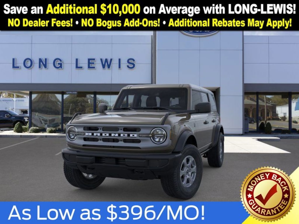 Marsh Gray 2025 Ford Bronco Big Bend FCT 4WD 10-Speed Automatic 2.3L EcoBoost I-4 4-Wheel Disc Brakes, 4.46 Axle Ratio, 7 Speakers, ABS brakes, Air Conditioning, Alloy wheels, AM/FM radio: SiriusXM with 360L, AM/FM Stereo, Auto High-beam Headlights, Brake assist, Carbonized Gray Molded-In-Color Hard Top, Cloth Bucket Seats, Compass, Connected Navigation, Delay-off headlights, Driver door bin, Driver vanity mirror, Dual front impact airbags, Dual front side impact airbags, Electronic Stability Control, Emergency communication system: 911 Assist, Exterior Parking Camera Rear, Front anti-roll bar, Front Bucket Seats, Front Center Armrest, Front License Plate Bracket, Front reading lights, Front wheel independent suspension, Fully automatic headlights, Hard Top Sound Deadening Headliner, Heated door mirrors, Illuminated entry, Integrated roll-over protection, Leather Shift Knob, Low tire pressure warning, Occupant sensing airbag, Outside temperature display, Overhead airbag, Overhead console, Panic alarm, Passenger door bin, Passenger vanity mirror, Power door mirrors, Power steering, Power windows, Radio data system, Rear-Window Defroster & Washer, Remote keyless entry, Security system, SiriusXM w/360L, Speed control, Split folding rear seat, Steering wheel mounted audio controls, SYNC 4, Tachometer, Telescoping steering wheel, Tilt steering wheel, Traction control, Trip computer, Variably intermittent wipers, Wheels: 17" Carbonized Gray-Painted Aluminum.