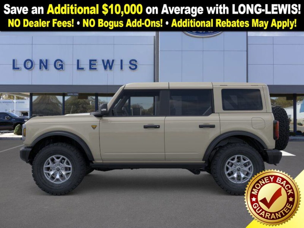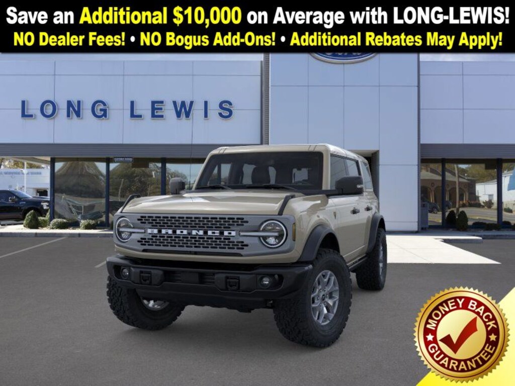 Dealer Discount of $2,381 off MSRP Desert Sand 2025 Ford Bronco Badlands NFT 4WD 10-Speed Automatic 2.7L EcoBoost V6 4-Wheel Disc Brakes, 4.7 Axle Ratio, 7 Speakers, ABS brakes, Air Conditioning, Alloy wheels, AM/FM radio: SiriusXM with 360L, AM/FM Stereo, Auto High-beam Headlights, Auto-dimming Rear-View mirror, Body Color-Painted Hard Top, Brake assist, Compass, Delay-off headlights, Driver door bin, Driver vanity mirror, Dual front impact airbags, Dual front side impact airbags, Electronic Stability Control, Emergency communication system: 911 Assist, Exterior Parking Camera Rear, Front anti-roll bar, Front Bucket Seats, Front Center Armrest, Front fog lights, Front License Plate Bracket, Front reading lights, Front wheel independent suspension, Fully automatic headlights, Hard Top Sound Deadening Headliner, Heated door mirrors, Heated front seats, Heated steering wheel, Illuminated entry, Integrated roll-over protection, Internet access capable: FordPass Connect, Leather Shift Knob, Low tire pressure warning, Marine Grade Vinyl Heated Bucket Seats, Occupant sensing airbag, Outside temperature display, Overhead airbag, Overhead console, Panic alarm, Passenger door bin, Passenger vanity mirror, Power door mirrors, Power steering, Power windows, Radio data system, Rear-Window Defroster & Washer, Remote keyless entry, Security system, SiriusXM w/360L, Speed control, Split folding rear seat, Steering wheel mounted audio controls, SYNC 4, Tachometer, Telescoping steering wheel, Tilt steering wheel, Traction control, Trip computer, Variably intermittent wipers, Voltmeter, Wheels: 17" Carbonized Gray-Painted Aluminum.