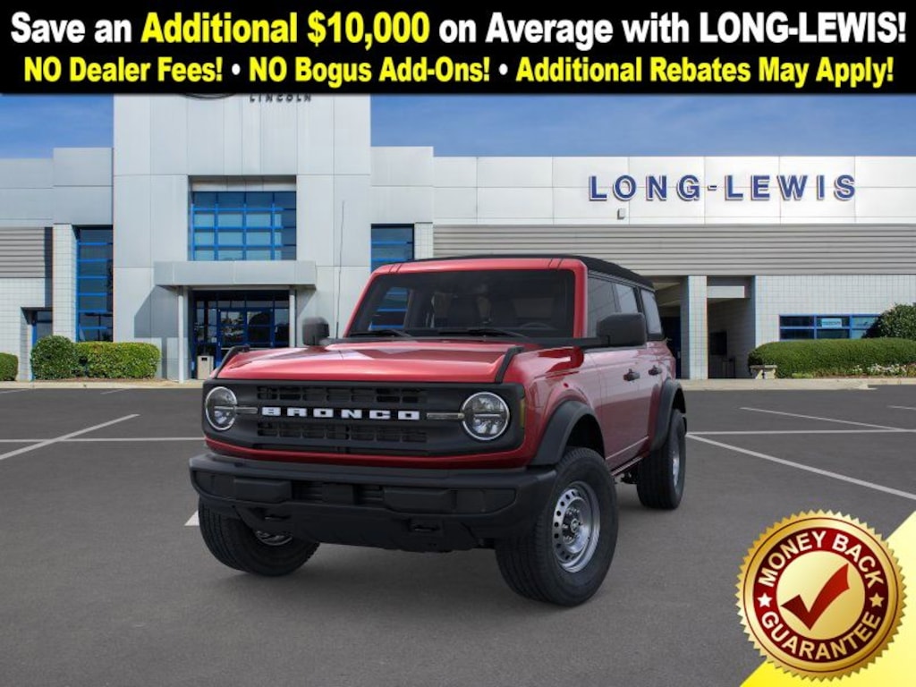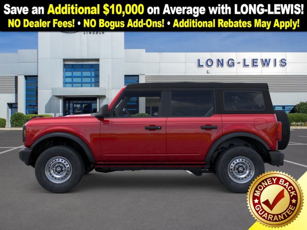 Dealer Discount of $617 off MSRP Ruby Red Metallic Tinted Clearcoat 2025 Ford Bronco fctp 4WD 10-Speed Automatic 2.3L EcoBoost I-4 4-Wheel Disc Brakes, 4.46 Axle Ratio, 7 Speakers, ABS brakes, Air Conditioning, AM/FM radio: SiriusXM with 360L, AM/FM Stereo, Auto High-beam Headlights, Brake assist, Cloth Bucket Seats, Compass, Delay-off headlights, Driver door bin, Driver vanity mirror, Dual front impact airbags, Dual front side impact airbags, Electronic Stability Control, Emergency communication system: 911 Assist, Equipment Group 101A, Exterior Parking Camera Rear, Front anti-roll bar, Front Bucket Seats, Front Center Armrest, Front License Plate Bracket, Front reading lights, Front wheel independent suspension, Fully automatic headlights, Heated door mirrors, Illuminated entry, Integrated roll-over protection, Internet access capable: FordPass Connect, Low tire pressure warning, Occupant sensing airbag, Outside temperature display, Overhead airbag, Overhead console, Panic alarm, Passenger door bin, Passenger vanity mirror, Power door mirrors, Power steering, Power windows, Radio data system, Remote keyless entry, Security system, SiriusXM w/360L, Speed control, Split folding rear seat, Steering wheel mounted audio controls, SYNC 4, Tachometer, Telescoping steering wheel, Tilt steering wheel, Traction control, Trip computer, Variably intermittent wipers, Wheels: 16" Bright Polished Silver-Painted Steel. Price includes: $1000 - Final Days Mega Bonus Cash. Exp. 01/02/2026 $2000 - Retail Bonus Cash. Exp. 01/05/2026