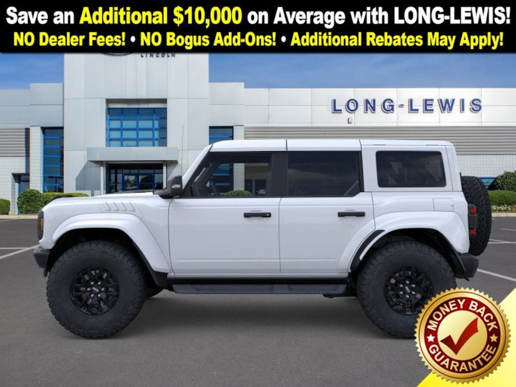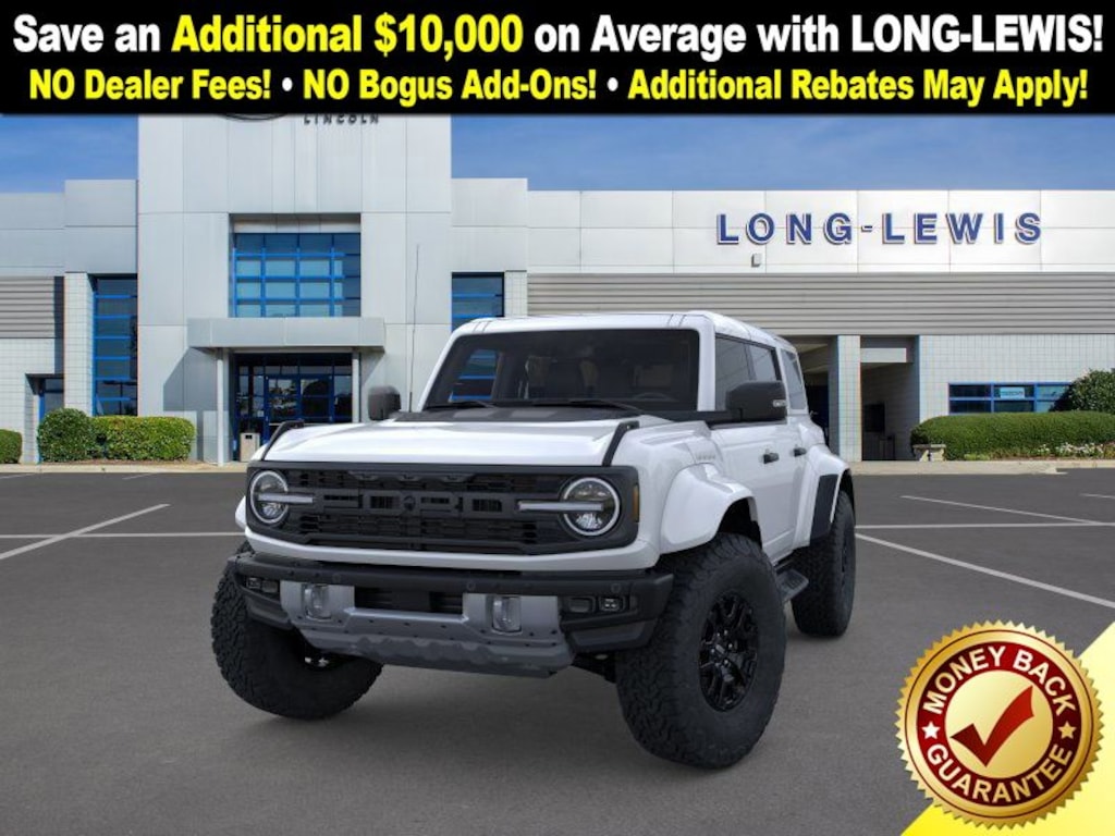 Dealer Discount of $4,591 off MSRP Oxford White 2025 Ford Bronco Raptor NFT 4WD 10-Speed Automatic 3.0L EcoBoost V6 12 Speakers, 4-Wheel Disc Brakes, ABS brakes, Air Conditioning, Alloy wheels, AM/FM radio: SiriusXM with 360L, Auto High-beam Headlights, Auto-dimming Rear-View mirror, Automatic temperature control, Body Color-Painted Hard Top, Brake assist, Compass, Connected Navigation, Convertible HardTop, Convertible roof lining, Delay-off headlights, Driver door bin, Driver vanity mirror, Dual front impact airbags, Dual front side impact airbags, Electronic Stability Control, Emergency communication system: 911 Assist, Exterior Parking Camera Rear, Front anti-roll bar, Front Bucket Seats, Front Center Armrest, Front dual zone A/C, Front fog lights, Front License Plate Bracket, Front reading lights, Front wheel independent suspension, Fully automatic headlights, Garage door transmitter, Glass rear window, Hard Top Sound Deadening Headliner, Heated door mirrors, Heated front seats, Heated steering wheel, Illuminated entry, Integrated roll-over protection, Internet access capable: FordPass Connect, Leather Shift Knob, Leather-Trimmed/Vinyl Bucket Seats, Low tire pressure warning, Marine Grade Vinyl Bucket Seats, Navigation system: Connected Navigation, Occupant sensing airbag, Outside temperature display, Overhead airbag, Overhead console, Panic alarm, Passenger door bin, Passenger vanity mirror, Power door mirrors, Power steering, Power windows, Radio data system, Radio: B&O Sound System by Bang & Olufsen, Rear anti-roll bar, Rear seat center armrest, Rear window defroster, Rear window wiper, Rear-Window Defroster & Washer, Remote keyless entry, Security system, SiriusXM w/360L, Speed control, Split folding rear seat, Steering wheel mounted audio controls, SYNC 4, Tachometer, Telescoping steering wheel, Tilt steering wheel, Traction control, Trip computer, Turn signal indicator mirrors, Variably intermittent wipers, Voltmeter, Wheels: 17" Black High Gloss-Painted Aluminum.
