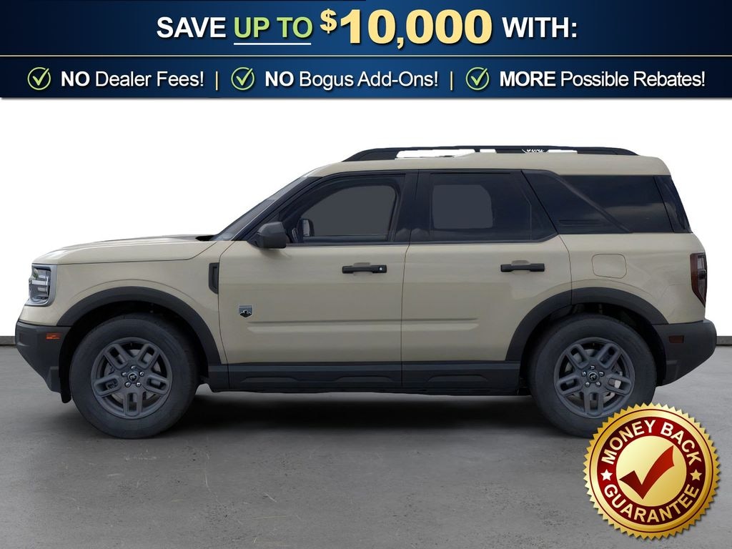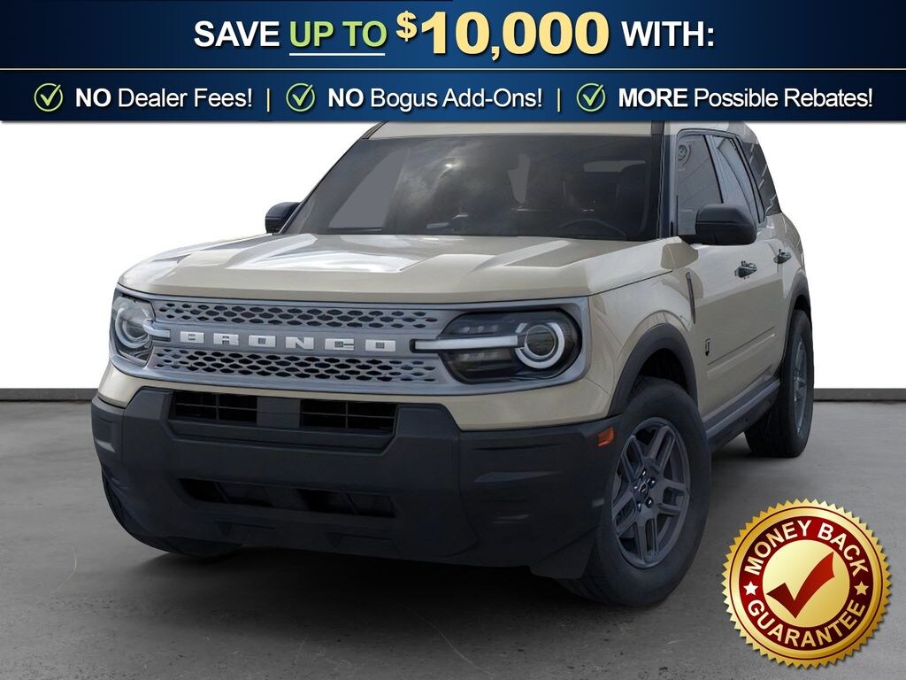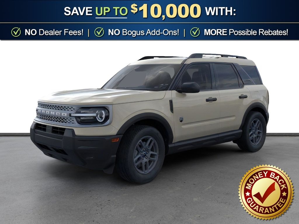 Desert Sand 2025 Ford Bronco Sport Big Bend FCT 4WD 8-Speed Automatic 1.5L EcoBoost 4-Wheel Disc Brakes, 6 Speakers, ABS brakes, Air Conditioning, Alloy wheels, AM/FM radio: SiriusXM, AM/FM Stereo, Auto High-beam Headlights, Automatic temperature control, Brake assist, Cloth w/Easy-to-Clean Front Bucket Seats, Compass, Delay-off headlights, Driver door bin, Driver vanity mirror, Dual front impact airbags, Dual front side impact airbags, Electronic Stability Control, Emergency communication system: SYNC 4 911 Assist, Four wheel independent suspension, Front anti-roll bar, Front Bucket Seats, Front Center Armrest, Front License Plate Bracket, Front reading lights, Fully automatic headlights, Heated door mirrors, Illuminated entry, Knee airbag, Low tire pressure warning, Occupant sensing airbag, Outside temperature display, Overhead airbag, Overhead console, Panic alarm, Passenger door bin, Passenger vanity mirror, Power door mirrors, Power steering, Power windows, Radio data system, Rear anti-roll bar, Rear Parking Sensors, Rear reading lights, Rear seat center armrest, Rear window defroster, Rear window wiper, Remote keyless entry, Security system, SiriusXM, Speed control, Speed-sensing steering, Speed-Sensitive Wipers, Split folding rear seat, Steering wheel mounted audio controls, SYNC 4 w/Enhanced Voice Recognition, Tachometer, Telescoping steering wheel, Tilt steering wheel, Traction control, Trip computer, Variably intermittent wipers, Wheels: 17" Carbonized Gray Painted Aluminum, Wheels: 17" Carbonized Gray-Painted Aluminum.