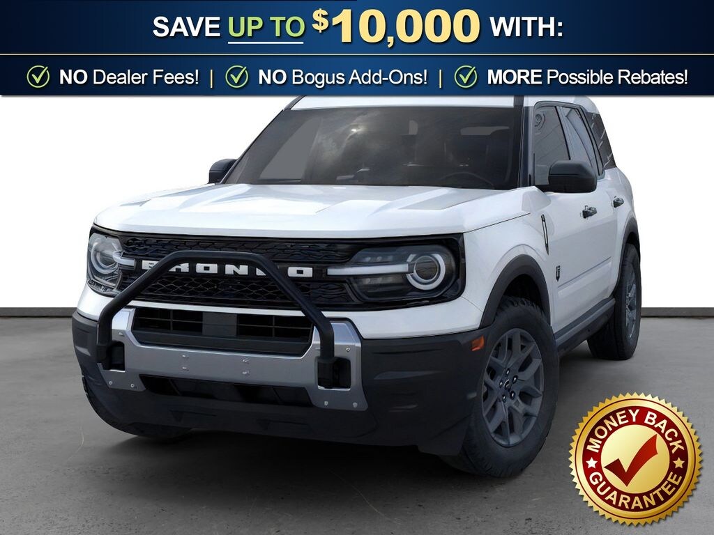 Oxford White 2025 Ford Bronco Sport Big Bend NFT 4WD 8-Speed Automatic 1.5L EcoBoost 110V/400W AC Power Outlet, 2nd Row Carpeted Seatback, 4-Wheel Disc Brakes, 6 Speakers, ABS brakes, Air Conditioning, Alloy wheels, AM/FM radio: SiriusXM, AM/FM Stereo, Auto High-beam Headlights, Automatic temperature control, Auxiliary Switches & Wiring, Black Diamond Off-Road Package, Brake assist, Brush Guard, Cargo Management System (Shelf/Divider/Table), Cargo Mat, Class II Trailer Tow Pack w/Trailer Sway Control, Cloth w/Easy-to-Clean Front Bucket Seats, Compass, Delay-off headlights, Driver door bin, Driver vanity mirror, Dual front impact airbags, Dual front side impact airbags, Electronic Stability Control, Emergency communication system: SYNC 4 911 Assist, Fender Tie Downs, Four wheel independent suspension, Front & Rear Black Bumpers, Front anti-roll bar, Front Bucket Seats, Front Center Armrest, Front License Plate Bracket, Front reading lights, Fully automatic headlights, Heated door mirrors, Illuminated entry, Interior Grab Handle, Knee airbag, Low tire pressure warning, Occupant sensing airbag, Outside temperature display, Overhead airbag, Overhead console, Panic alarm, Passenger door bin, Passenger vanity mirror, Power door mirrors, Power steering, Power windows, Radio data system, Rear anti-roll bar, Rear Parking Sensors, Rear reading lights, Rear seat center armrest, Rear window defroster, Rear window wiper, Recovery Hooks, Remote keyless entry, Security system, SiriusXM, Speed control, Speed-sensing steering, Speed-Sensitive Wipers, Split folding rear seat, Steering wheel mounted audio controls, SYNC 4 w/Enhanced Voice Recognition, Tachometer, Telescoping steering wheel, Tilt steering wheel, Traction control, Trip computer, Variably intermittent wipers, Wheels: 17" Carbonized Gray Painted Aluminum, Wheels: 17" Carbonized Gray-Painted Aluminum.