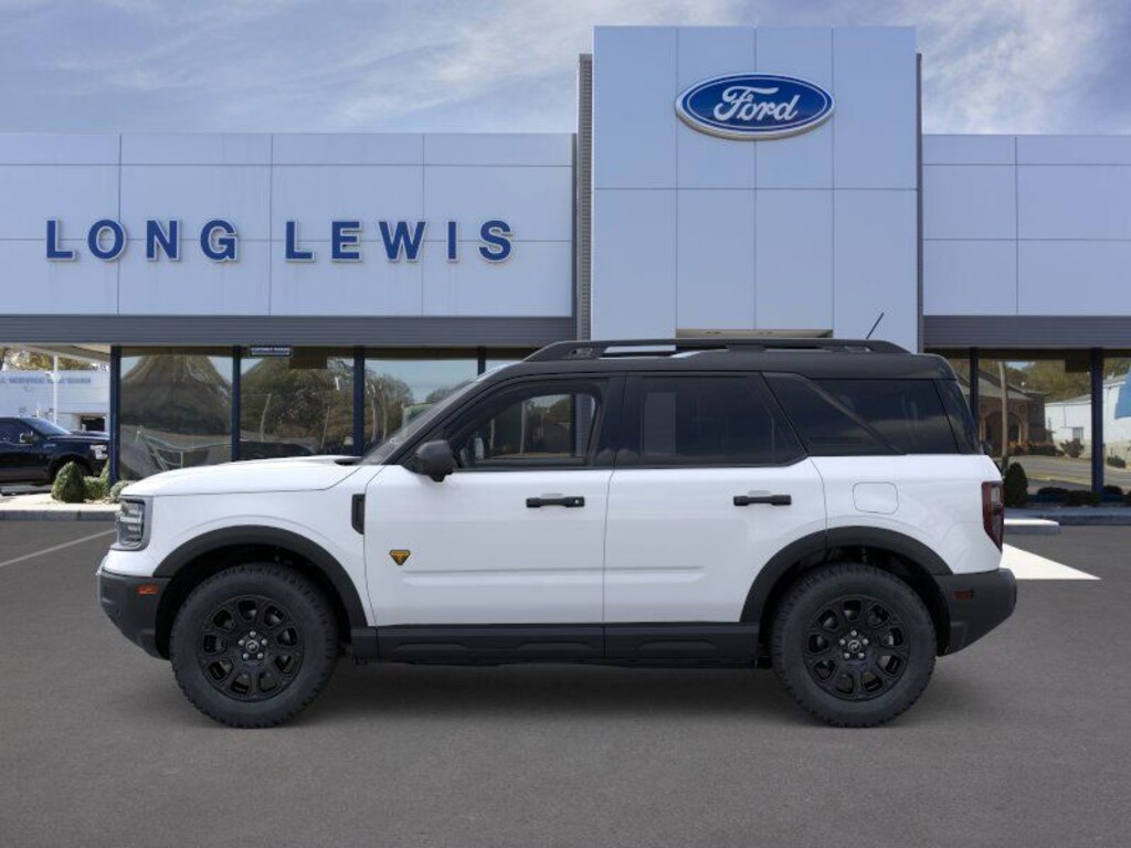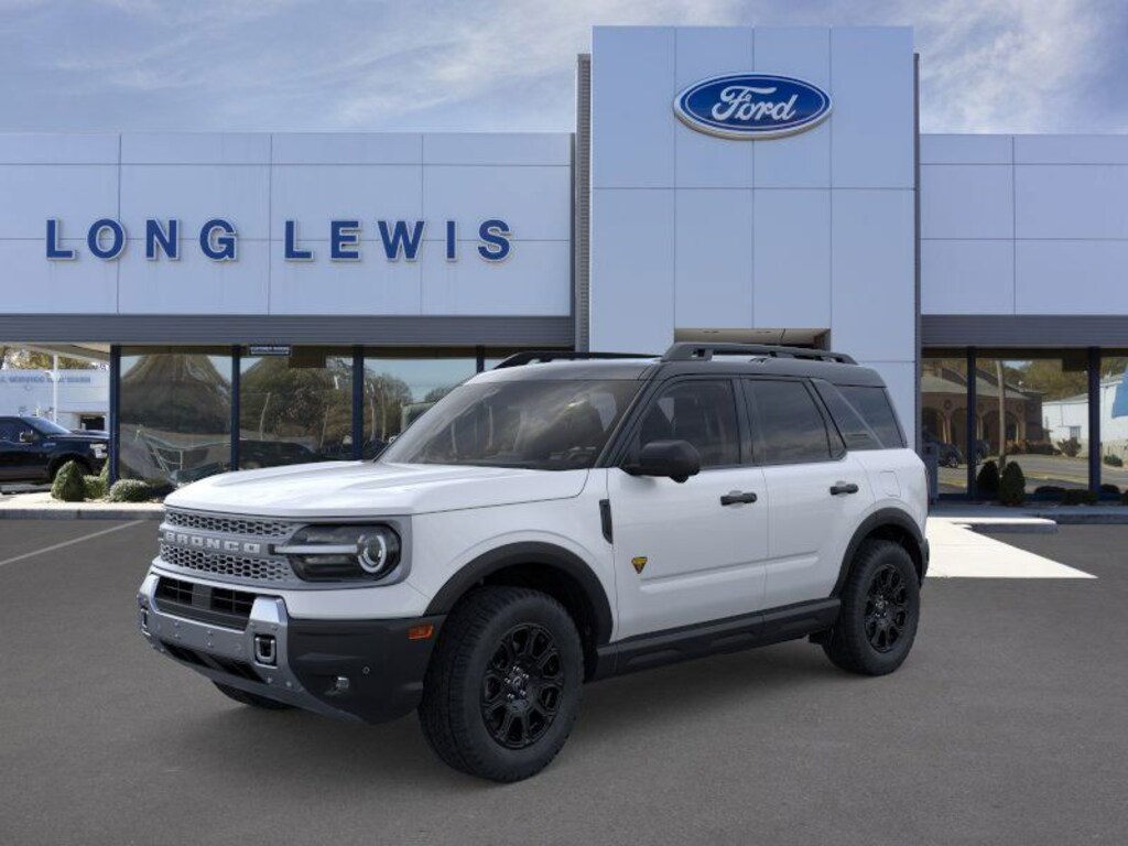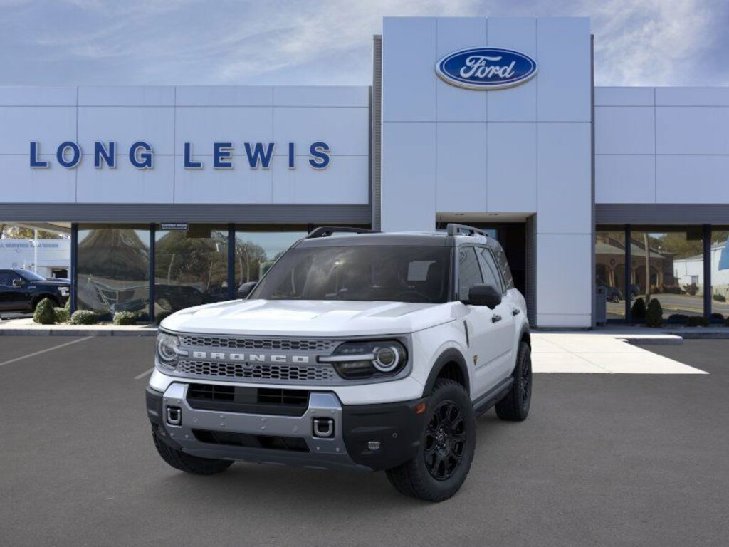 Oxford White 2025 Ford Bronco Sport Badlands 4WD 8-Speed Automatic EcoBoost 2.0L I4 GTDi DOHC Turbocharged VCT 4-Wheel Disc Brakes, 6 Speakers, ABS brakes, Air Conditioning, Alloy wheels, AM/FM radio: SiriusXM, AM/FM Stereo, Auto High-beam Headlights, Auto-dimming Rear-View mirror, Automatic temperature control, B&O Sound System by Bang & Olufsen, Badlands Tech Package, Brake assist, Compass, Connected Navigation, Delay-off headlights, Driver door bin, Driver vanity mirror, Dual front impact airbags, Dual front side impact airbags, Electronic Stability Control, Emergency communication system: SYNC 4 911 Assist, Four wheel independent suspension, Front anti-roll bar, Front Bucket Seats, Front Center Armrest, Front fog lights, Front License Plate Bracket, Front reading lights, Fully automatic headlights, Garage door transmitter, HD Radio, Heated door mirrors, Heated front seats, Heated steering wheel, Illuminated entry, Knee airbag, Leather Trimmed Front Bucket Seats, Low tire pressure warning, Memory seat, Occupant sensing airbag, Outside temperature display, Overhead airbag, Overhead console, Panic alarm, Passenger door bin, Passenger vanity mirror, Power door mirrors, Power driver seat, Power Moonroof, Power passenger seat, Power steering, Power windows, Radio data system, Rear anti-roll bar, Rear reading lights, Rear seat center armrest, Rear window defroster, Rear window wiper, Remote keyless entry, Security system, SiriusXM, Speed control, Speed-sensing steering, Speed-Sensitive Wipers, Split folding rear seat, Steering wheel mounted audio controls, SYNC 4 w/Enhanced Voice Recognition, Tachometer, Telescoping steering wheel, Tilt steering wheel, Traction control, Trip computer, Variably intermittent wipers, Wheels: 17" Matte Black-Painted Aluminum.