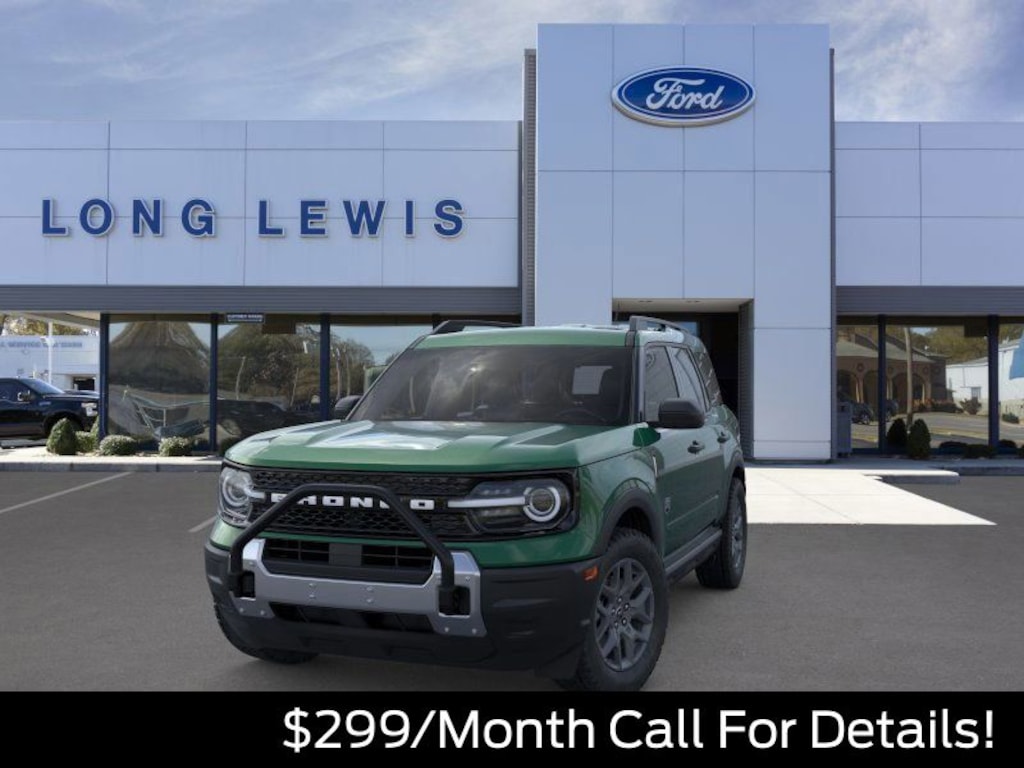 Eruption Green Metallic 2025 Ford Bronco Sport Big Bend fctp 4WD 8-Speed Automatic 1.5L EcoBoost 110V/400W AC Power Outlet, 2nd Row Carpeted Seatback, 4-Wheel Disc Brakes, 6 Speakers, ABS brakes, Air Conditioning, Alloy wheels, AM/FM radio: SiriusXM, AM/FM Stereo, Auto High-beam Headlights, Automatic temperature control, Auxiliary Switches & Wiring, Black Diamond Off-Road Package, Brake assist, Brush Guard, Cargo Management System (Shelf/Divider/Table), Cargo Mat, Class II Trailer Tow Pack w/Trailer Sway Control, Cloth w/Easy-to-Clean Front Bucket Seats, Compass, Delay-off headlights, Driver door bin, Driver vanity mirror, Dual front impact airbags, Dual front side impact airbags, Electronic Stability Control, Emergency communication system: SYNC 4 911 Assist, Fender Tie Downs, Four wheel independent suspension, Front & Rear Black Bumpers, Front anti-roll bar, Front Bucket Seats, Front Center Armrest, Front License Plate Bracket, Front reading lights, Fully automatic headlights, Heated door mirrors, Illuminated entry, Interior Grab Handle, Knee airbag, Low tire pressure warning, Occupant sensing airbag, Outside temperature display, Overhead airbag, Overhead console, Panic alarm, Passenger door bin, Passenger vanity mirror, Power door mirrors, Power steering, Power windows, Radio data system, Rear anti-roll bar, Rear Parking Sensors, Rear reading lights, Rear seat center armrest, Rear window defroster, Rear window wiper, Recovery Hooks, Remote keyless entry, Security system, SiriusXM, Speed control, Speed-sensing steering, Speed-Sensitive Wipers, Split folding rear seat, Steering wheel mounted audio controls, SYNC 4 w/Enhanced Voice Recognition, Tachometer, Telescoping steering wheel, Tilt steering wheel, Traction control, Trip computer, Variably intermittent wipers, Wheels: 17" Carbonized Gray Painted Aluminum, Wheels: 17" Carbonized Gray-Painted Aluminum.