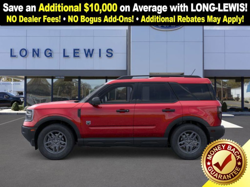 Ruby Red Metallic Tinted Clearcoat 2025 Ford Bronco Sport Big Bend NFT 4WD 8-Speed Automatic 1.5L EcoBoost 4-Wheel Disc Brakes, 6 Speakers, ABS brakes, Air Conditioning, Alloy wheels, AM/FM radio: SiriusXM, AM/FM Stereo, Auto High-beam Headlights, Automatic temperature control, Brake assist, Cloth w/Easy-to-Clean Front Bucket Seats, Compass, Delay-off headlights, Driver door bin, Driver vanity mirror, Dual front impact airbags, Dual front side impact airbags, Electronic Stability Control, Emergency communication system: SYNC 4 911 Assist, Four wheel independent suspension, Front anti-roll bar, Front Bucket Seats, Front Center Armrest, Front License Plate Bracket, Front reading lights, Fully automatic headlights, Heated door mirrors, Illuminated entry, Knee airbag, Low tire pressure warning, Occupant sensing airbag, Outside temperature display, Overhead airbag, Overhead console, Panic alarm, Passenger door bin, Passenger vanity mirror, Power door mirrors, Power steering, Power windows, Radio data system, Rear anti-roll bar, Rear Parking Sensors, Rear reading lights, Rear seat center armrest, Rear window defroster, Rear window wiper, Remote keyless entry, Security system, SiriusXM, Speed control, Speed-sensing steering, Speed-Sensitive Wipers, Split folding rear seat, Steering wheel mounted audio controls, SYNC 4 w/Enhanced Voice Recognition, Tachometer, Telescoping steering wheel, Tilt steering wheel, Traction control, Trip computer, Variably intermittent wipers, Wheels: 17" Carbonized Gray-Painted Aluminum.
