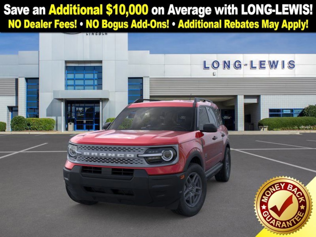 Priced below KBB Fair Purchase Price! Ruby Red Metallic Tinted Clearcoat 2025 Ford Bronco Sport Big Bend FCT 4WD 8-Speed Automatic 1.5L EcoBoost 4-Wheel Disc Brakes, 6 Speakers, ABS brakes, Air Conditioning, Alloy wheels, AM/FM radio: SiriusXM, AM/FM Stereo, Auto High-beam Headlights, Automatic temperature control, Brake assist, Cloth w/Easy-to-Clean Front Bucket Seats, Compass, Delay-off headlights, Driver door bin, Driver vanity mirror, Dual front impact airbags, Dual front side impact airbags, Electronic Stability Control, Emergency communication system: SYNC 4 911 Assist, Equipment Group 200A, Four wheel independent suspension, Front anti-roll bar, Front Bucket Seats, Front Center Armrest, Front License Plate Bracket, Front reading lights, Fully automatic headlights, Heated door mirrors, Illuminated entry, Knee airbag, Low tire pressure warning, Occupant sensing airbag, Outside temperature display, Overhead airbag, Overhead console, Panic alarm, Passenger door bin, Passenger vanity mirror, Power door mirrors, Power steering, Power windows, Radio data system, Rear anti-roll bar, Rear Parking Sensors, Rear reading lights, Rear seat center armrest, Rear window defroster, Rear window wiper, Remote keyless entry, Security system, SiriusXM, Speed control, Speed-sensing steering, Speed-Sensitive Wipers, Split folding rear seat, Steering wheel mounted audio controls, SYNC 4 w/Enhanced Voice Recognition, Tachometer, Telescoping steering wheel, Tilt steering wheel, Traction control, Trip computer, Variably intermittent wipers, Wheels: 17" Carbonized Gray-Painted Aluminum.