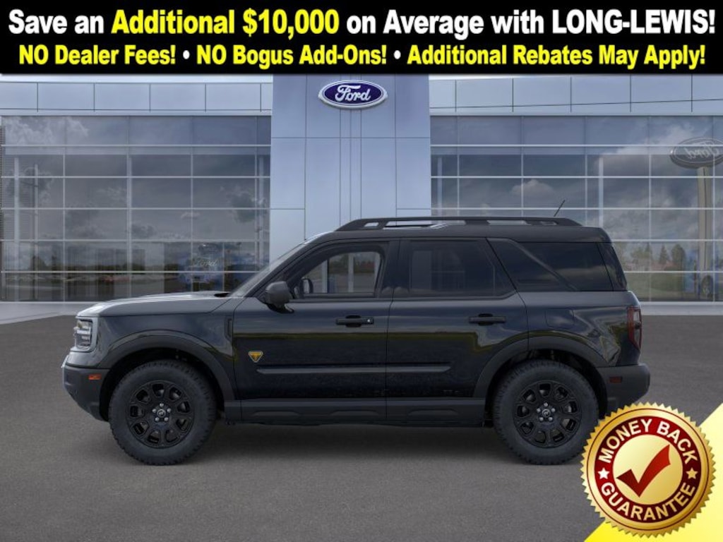 Badlands Tech Package (B&O Sound System by Bang & Olufsen, Connected Navigation, and HD Radio), Equipment Group 400A, 4-Wheel Disc Brakes, 6 Speakers, ABS brakes, Air Conditioning, Alloy wheels, AM/FM radio: SiriusXM, AM/FM Stereo, Auto High-beam Headlights, Auto-dimming Rear-View mirror, Automatic temperature control, Brake assist, Compass, Delay-off headlights, Driver door bin, Driver vanity mirror, Dual front impact airbags, Dual front side impact airbags, Electronic Stability Control, Emergency communication system: SYNC 4 911 Assist, Four wheel independent suspension, Front anti-roll bar, Front Bucket Seats, Front Center Armrest, Front fog lights, Front reading lights, Fully automatic headlights, Garage door transmitter, Heated door mirrors, Heated front seats, Heated steering wheel, Illuminated entry, Knee airbag, Leather Trimmed Front Bucket Seats, Low tire pressure warning, Memory seat, Occupant sensing airbag, Outside temperature display, Overhead airbag, Overhead console, Panic alarm, Passenger door bin, Passenger vanity mirror, Power door mirrors, Power driver seat, Power passenger seat, Power steering, Power windows, Radio data system, Rear anti-roll bar, Rear reading lights, Rear seat center armrest, Rear window defroster, Rear window wiper, Remote keyless entry, Security system, SiriusXM, Speed control, Speed-sensing steering, Speed-Sensitive Wipers, Split folding rear seat, Steering wheel mounted audio controls, SYNC 4 w/Enhanced Voice Recognition, Tachometer, Telescoping steering wheel, Tilt steering wheel, Traction control, Trip computer, Variably intermittent wipers, and Wheels: 17" Matte Black-Painted Aluminum. Price includes: $1000 - Final Days Mega Bonus Cash. Exp. 01/02/2026 $1500 - Retail Bonus Cash. Exp. 01/05/2026