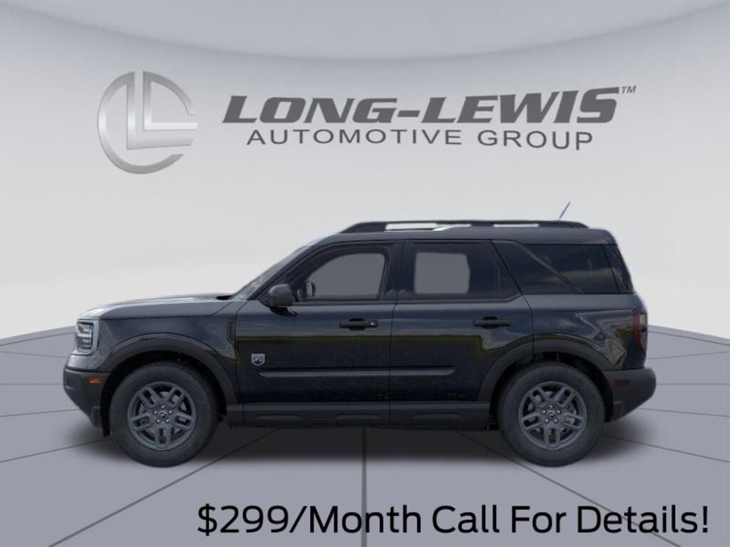 Shadow Black 2025 Ford Bronco Sport Big Bend fctp 4WD 8-Speed Automatic 1.5L EcoBoost 4-Wheel Disc Brakes, 6 Speakers, ABS brakes, Air Conditioning, Alloy wheels, AM/FM radio: SiriusXM, AM/FM Stereo, Auto High-beam Headlights, Automatic temperature control, Brake assist, Cloth w/Easy-to-Clean Front Bucket Seats, Compass, Convenience Package, Delay-off headlights, Driver door bin, Driver vanity mirror, Dual front impact airbags, Dual front side impact airbags, Electronic Stability Control, Emergency communication system: SYNC 4 911 Assist, Four wheel independent suspension, Front anti-roll bar, Front Bucket Seats, Front Center Armrest, Front Driver/Passenger Seat Back Map Pockets, Front License Plate Bracket, Front reading lights, Fully automatic headlights, Heated 8-Way Power Driver's Seat, Heated door mirrors, Illuminated entry, Knee airbag, LED Fog Lamps, Low tire pressure warning, Occupant sensing airbag, Outside temperature display, Overhead airbag, Overhead console, Panic alarm, Passenger door bin, Passenger vanity mirror, Power door mirrors, Power Moonroof, Power steering, Power windows, Premium Wrapped Steering Wheel, Radio data system, Rear anti-roll bar, Rear Parking Sensors, Rear reading lights, Rear seat center armrest, Rear window defroster, Rear window wiper, Remote keyless entry, Security system, SiriusXM, Speed control, Speed-sensing steering, Speed-Sensitive Wipers, Split folding rear seat, Steering wheel mounted audio controls, SYNC 4 w/Enhanced Voice Recognition, Tachometer, Telescoping steering wheel, Tilt steering wheel, Traction control, Trip computer, Universal Garage Door Opener (UGDO), Variably intermittent wipers, Wheels: 17" Carbonized Gray-Painted Aluminum.