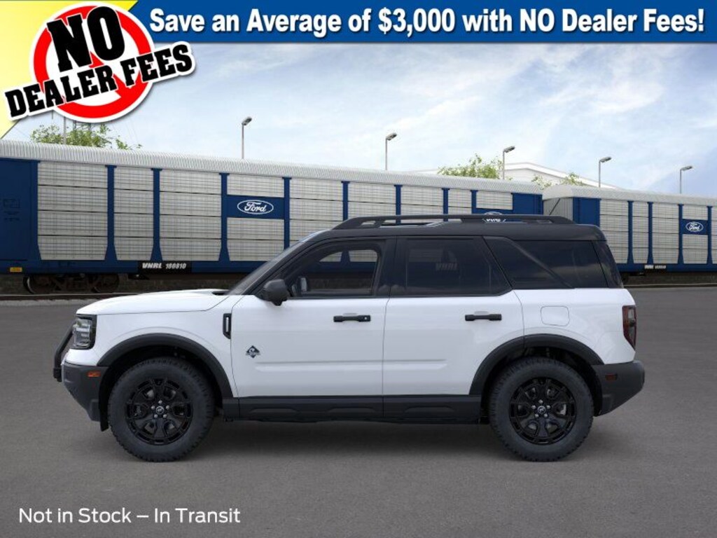Dealer Discount of $2,406 off MSRP Oxford White 2025 Ford Bronco Sport Outer Banks 4WD 8-Speed Automatic 1.5L EcoBoost 110V/400W AC Power Outlet, 2nd Row Carpeted Seatback, 360-Degree Camera w/Trail & Split View, 4-Wheel Disc Brakes, 6 Speakers, ABS brakes, Air Conditioning, Alloy wheels, AM/FM radio: SiriusXM, AM/FM Stereo, Auto High-beam Headlights, Auto-dimming Rear-View mirror, Automatic temperature control, Auxiliary Switches & Wiring, B&O Sound System by Bang & Olufsen, Brake assist, Brush Guard, Class II Trailer Tow Pack w/Trailer Sway Control, Compass, Connected Navigation, Delay-off headlights, Driver door bin, Driver vanity mirror, Dual front impact airbags, Dual front side impact airbags, Electronic Stability Control, Emergency communication system: SYNC 4 911 Assist, Fender Tie Downs, Four wheel independent suspension, Front & Rear Black Bumpers, Front anti-roll bar, Front Bucket Seats, Front Center Armrest, Front Driver/Passenger Seat Back Map Pockets, Front dual zone A/C, Front fog lights, Front License Plate Bracket, Front Parking Sensors, Front reading lights, Fully automatic headlights, Garage door transmitter, HD Radio, Heated door mirrors, Heated front seats, Heated steering wheel, High Clearance Fender Flares, HOSS 2.0 Off-Road Suspension, Illuminated entry, Interior Grab Handle, Knee airbag, Low tire pressure warning, Memory seat, Occupant sensing airbag, Outer Banks Tech Package+, Outside temperature display, Overhead airbag, Overhead console, Panic alarm, Passenger door bin, Passenger vanity mirror, Power door mirrors, Power driver seat, Power passenger seat, Power steering, Power windows, Premium Trimmed Front Bucket Seats w/Ebony/Roast, Radio data system, Rain sensing wipers, Rear anti-roll bar, Rear Parking Sensors, Rear reading lights, Rear seat center armrest, Rear window defroster, Rear window wiper, Recovery Hooks, Remote keyless entry, Reverse Brake Assist, Sasquatch Outer Banks Package, Security system, SiriusXM, Speed control, Speed-sensing steering, Speed-Sensitive Wipers, Split folding rear seat, Steering wheel mounted audio controls, SYNC 4 w/Enhanced Voice Recognition, Tachometer, Telescoping steering wheel, Tilt steering wheel, Traction control, Trail Control for Off-Road, Trip computer, Variably intermittent wipers, Wheels: 17" Ebony Black-Painted Aluminum, Wheels: 18" Ebony Black-Painted Aluminum.