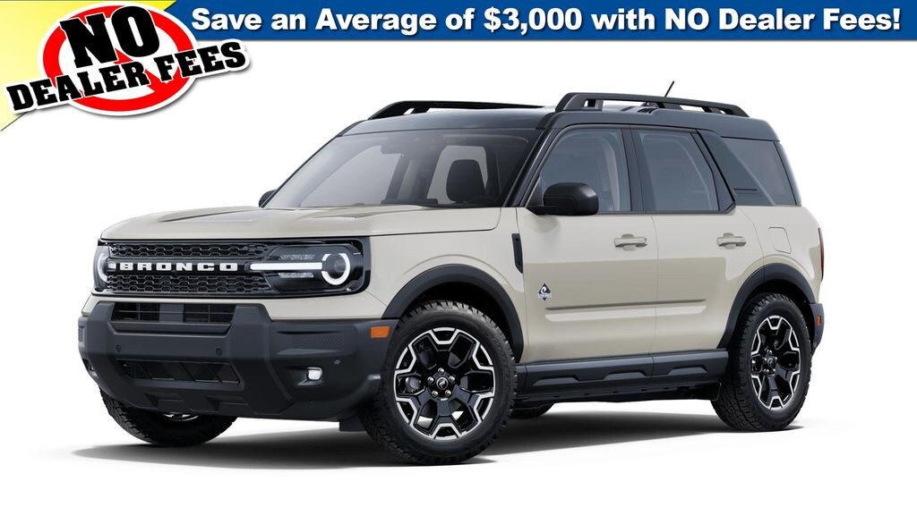 Dealer Discount of $1,986 off MSRP Priced below KBB Fair Purchase Price! Desert Sand 2025 Ford Bronco Sport Outer Banks 4WD 8-Speed Automatic 1.5L EcoBoost 4-Wheel Disc Brakes, 6 Speakers, ABS brakes, Air Conditioning, Alloy wheels, AM/FM radio: SiriusXM, AM/FM Stereo, Auto High-beam Headlights, Auto-dimming Rear-View mirror, Automatic temperature control, Brake assist, Compass, Delay-off headlights, Driver door bin, Driver vanity mirror, Dual front impact airbags, Dual front side impact airbags, Electronic Stability Control, Emergency communication system: SYNC 4 911 Assist, Four wheel independent suspension, Front anti-roll bar, Front Bucket Seats, Front Center Armrest, Front Driver/Passenger Seat Back Map Pockets, Front dual zone A/C, Front fog lights, Front License Plate Bracket, Front reading lights, Fully automatic headlights, Garage door transmitter, Heated door mirrors, Heated front seats, Heated steering wheel, Illuminated entry, Knee airbag, Low tire pressure warning, Memory seat, Occupant sensing airbag, Outside temperature display, Overhead airbag, Overhead console, Panic alarm, Passenger door bin, Passenger vanity mirror, Power door mirrors, Power driver seat, Power passenger seat, Power steering, Power windows, Premium Trimmed Front Bucket Seats w/Ebony/Roast, Radio data system, Rain sensing wipers, Rear anti-roll bar, Rear Parking Sensors, Rear reading lights, Rear seat center armrest, Rear window defroster, Rear window wiper, Remote keyless entry, Security system, SiriusXM, Speed control, Speed-sensing steering, Speed-Sensitive Wipers, Split folding rear seat, Steering wheel mounted audio controls, SYNC 4 w/Enhanced Voice Recognition, Tachometer, Telescoping steering wheel, Tilt steering wheel, Traction control, Trip computer, Variably intermittent wipers, Wheels: 18" Ebony Black-Painted Aluminum.